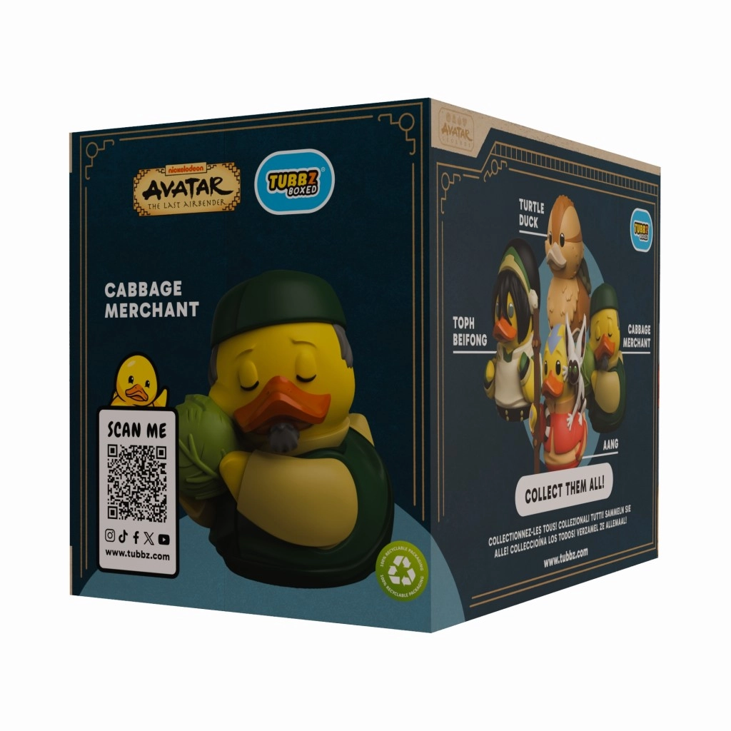 Rațiță de colecție TUBBZ inspirată din lumea Avatar: Legenda lui Aang, înfățișând iconic-ul Negustor de varză. Figurină din plastic de înaltă calitate cu înălțimea de aprox. 9 cm, livrată într-o cutie stilată cu fereastră. Produs licențiat oficial, cu detalii meticuloase, care va încânta orice fan și colecționar.