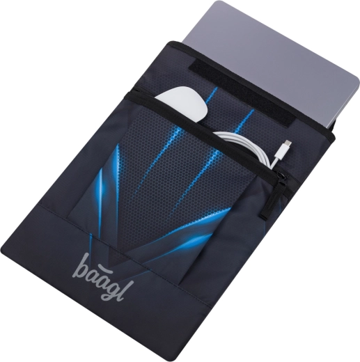 Husă stilată și rezistentă pentru laptop de până la 15" de la BAAGL, care oferă protecție fiabilă atât în rucsac, cât și purtată separat. Este fabricată din material rezistent la apă și 100% reciclat, are căptușeală moale de protecție și buzunar frontal pentru accesorii cu fermă YKK pentru utilizare lină și de lungă durată.
