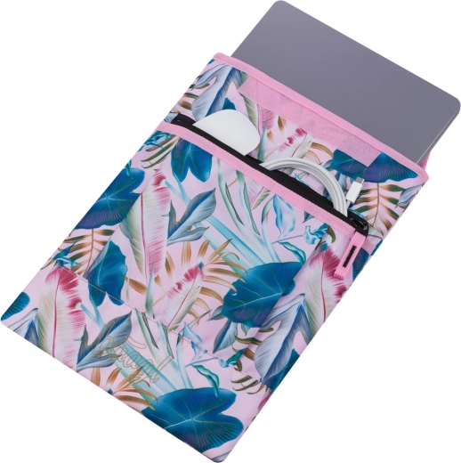 Husă pentru laptop Baagl Leafs, stilată și rezistentă, pentru dispozitive de până la 15″, oferă protecție fiabilă atât în rucsac, cât și purtată separat. Este fabricată din material rezistent la apă și 100% reciclat, are căptușeală moale și un buzunar frontal pentru accesorii cu fermoar YKK pentru deschidere lină și durabilitate îndelungată.