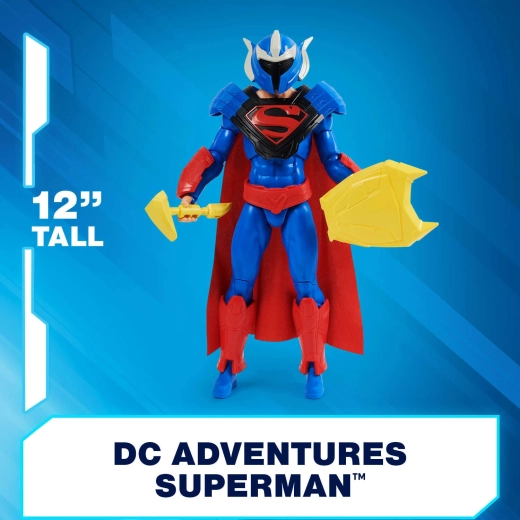 Această figurină detaliată cu Superman redă fidel aspectul său – costumul albastru cu simbolul „S” pe piept, pelerina roșie și silueta robustă a „Omului de Oțel”. Datorită celor 11 articulații, eroul poate fi poziționat cu ușurință în posturi de luptă sau de zbor, astfel încât copiii se vor bucura de multă distracție plină de acțiune, iar colecționarii de o expunere spectaculoasă.
