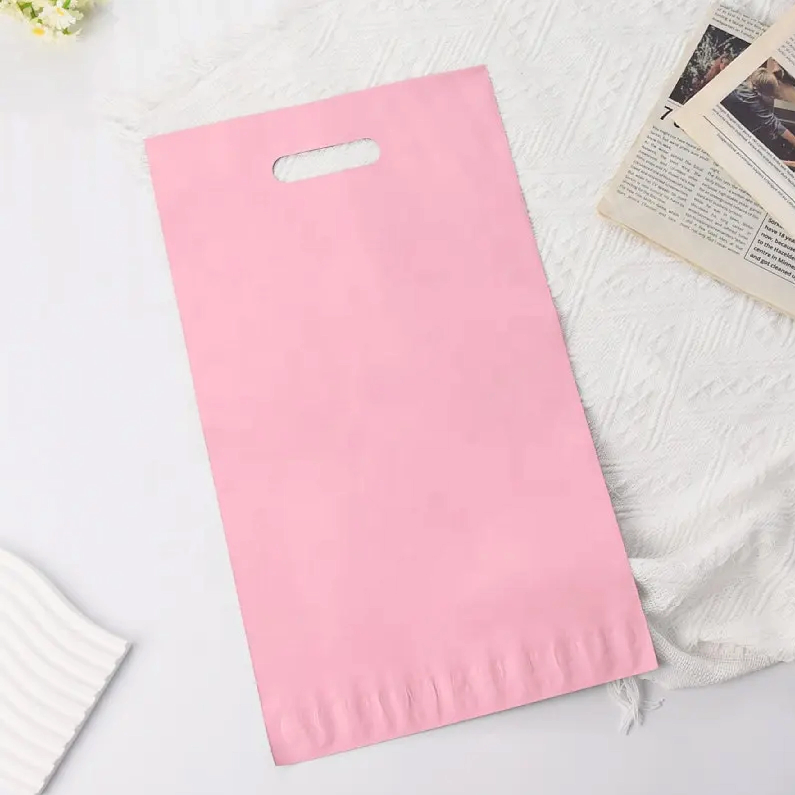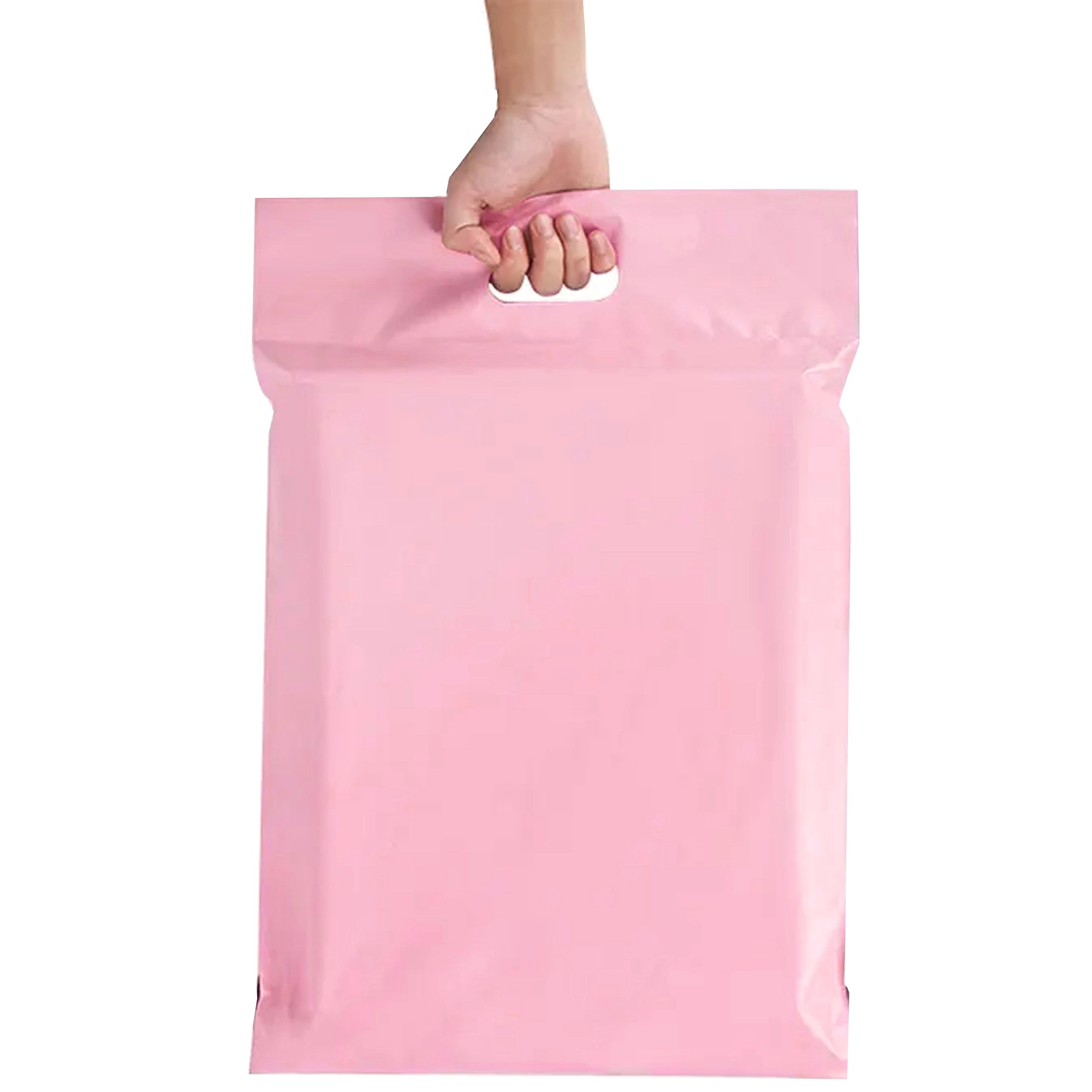 Plicurile sunt realizate din folie LDPE de calitate, rezistentă la rupere, umiditate, praf și murdărie. Datorită mânerului, coletele se transportă comod – practic atât pentru curieri, cât și pentru clienții finali. Culoarea roz ajută la creșterea vizibilității brandului și este potrivită pentru tipărire și personalizare.