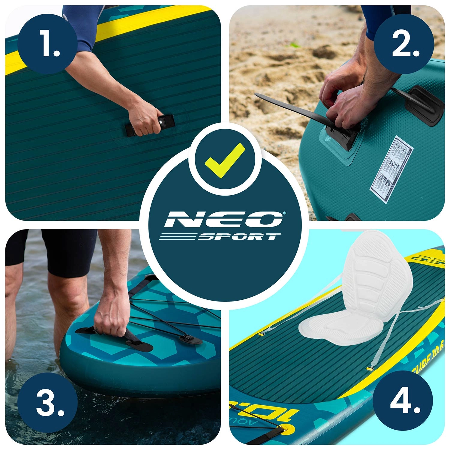 Textura EVA oferă aderență sigură chiar și cu tălpile ude, iar mânerele amplasate strategic permit ridicarea și manipularea confortabilă pe mal.