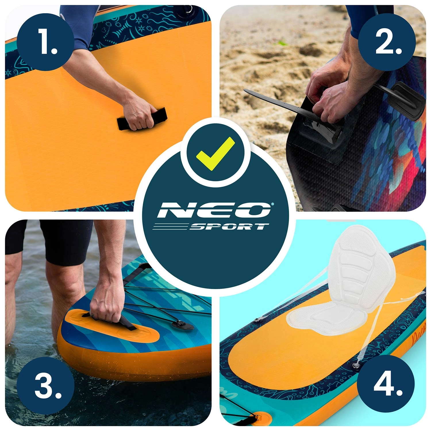 În pachet găsești paddleboardul, aripa detașabilă, vâsla reglabilă, pompa dublă acțiune cu manometru, leash-ul spirală, kitul de reparații și un rucsac rezistent. Împachetezi ușor, transporți simplu și pornești la drum.