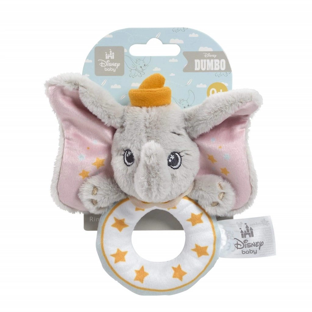 Zornăitoarea de pluș DUMBO îmbină joaca și dezvoltarea – bebelușul este atras de drăgălașul elefănțel cu urechi mari, iar inelul ușor de prins, cu steluțe, sprijină apucarea și coordonarea. Construcția foarte ușoară este blândă pentru mâinile mici și asigură o scuturare confortabilă și explorare plăcută.