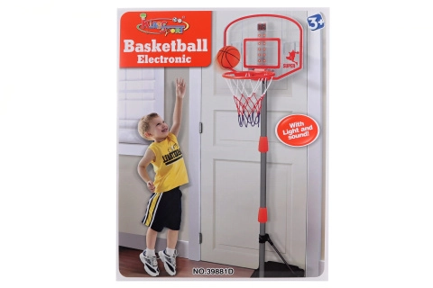 Coș de baschet distractiv pentru copii, cu înălțime reglabilă și contor electronic, care oferă efecte luminoase și sunete de încurajare. Excelent pentru joc activ acasă și în aer liber, sprijină mișcarea, coordonația și distracția pentru întreaga familie.