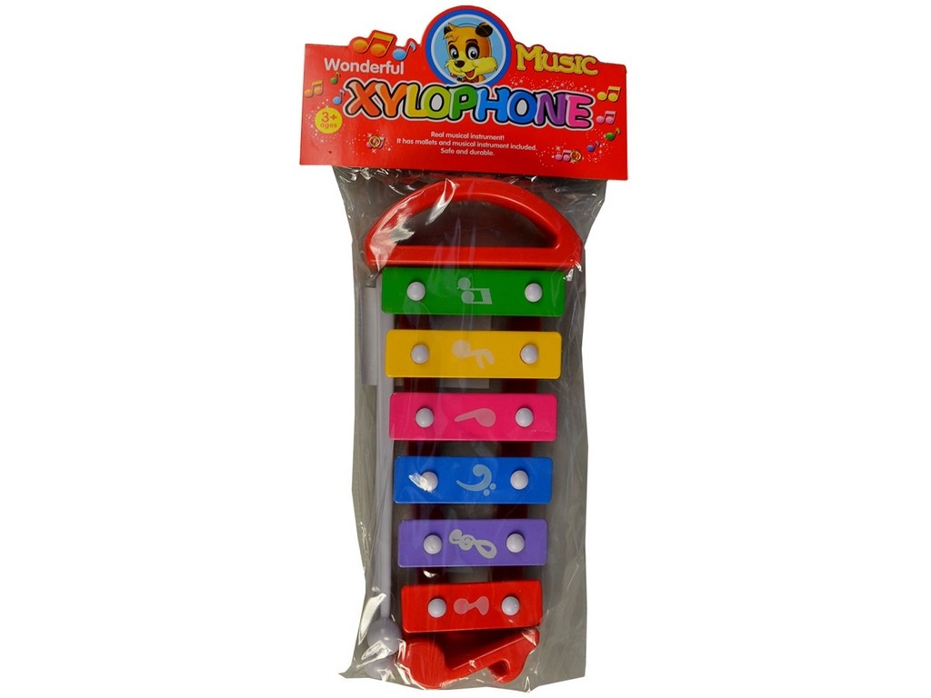 Acest xilofon compact pentru copii este o alegere excelentă pentru primele experiențe muzicale. Datorită combinației de clape metalice și cadru solid din plastic, oferă tonuri clare și rezistă jocului zilnic. Dimensiunea practică de 25 cm și construcția ușoară asigură că cei mici îl pot lua cu ei oriunde.