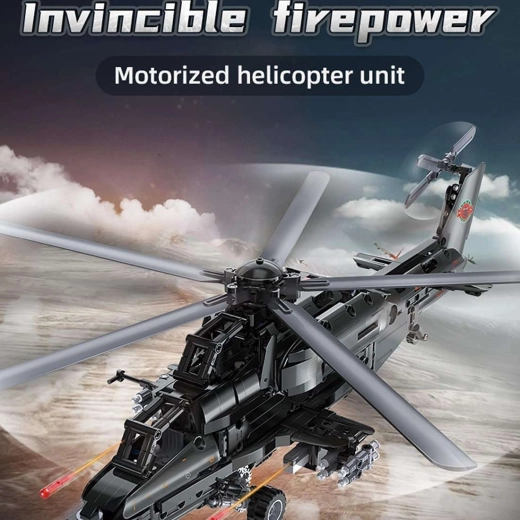 Setul din seria Just Move It îi va încânta pe toți pasionații de construcții care adoră modelele tehnice cu funcții realiste. Elicopterul WZ-10, în negru elegant cu detalii gri, se remarcă prin mecanica ingenioasă a rotoarelor, care pot fi rotite manual sau în timpul deplasării, și prin fuselajul detaliat cu cockpit deschizabil.