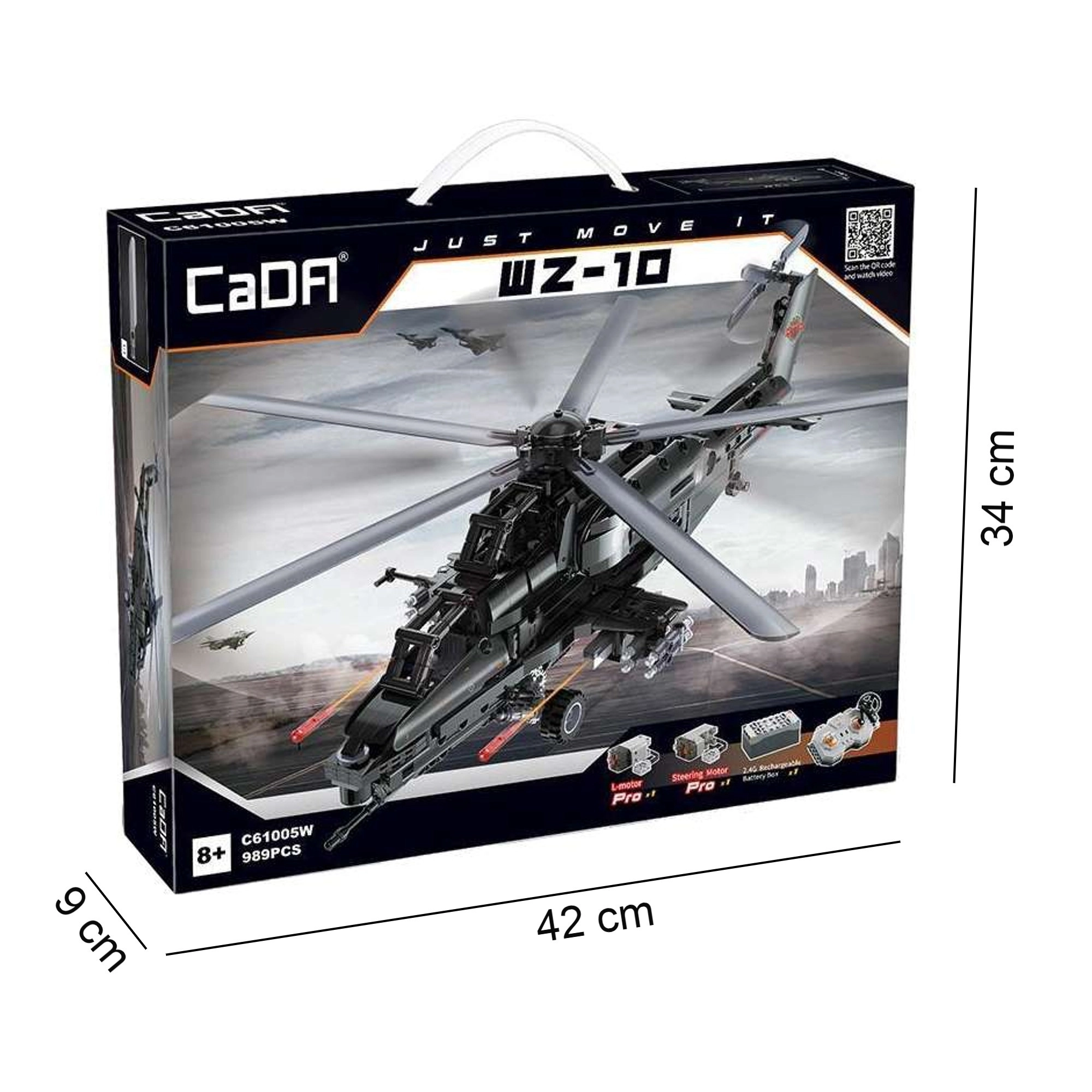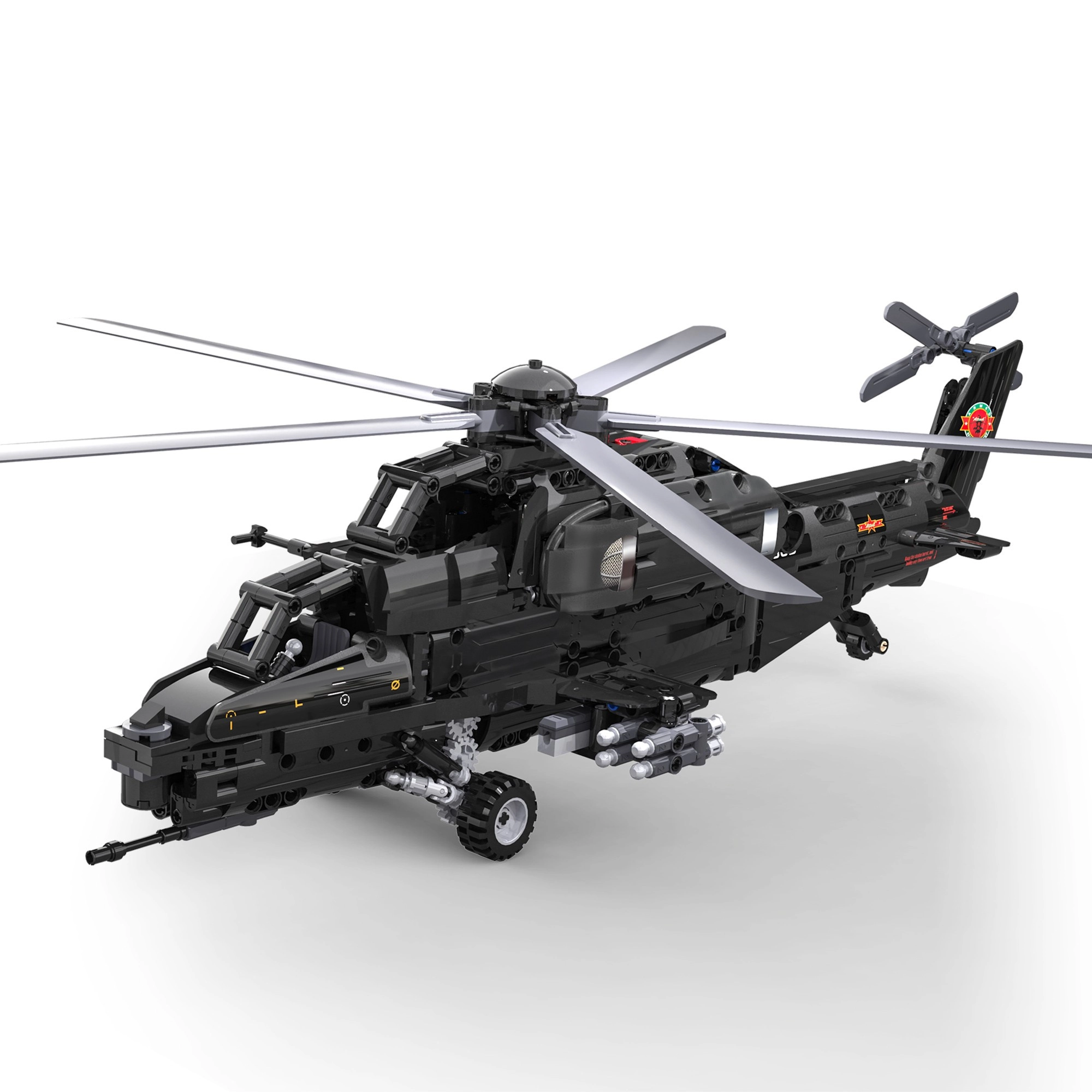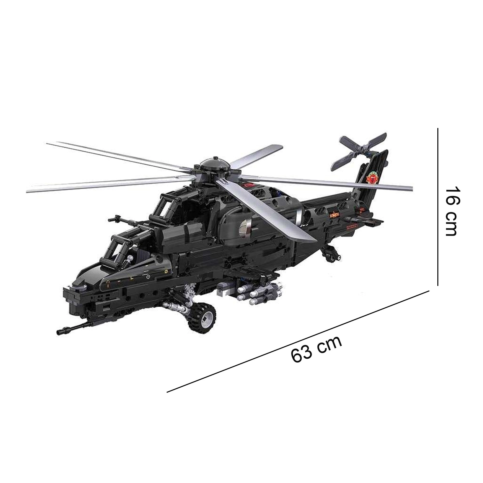 Construiește iconicul elicopter de atac WZ-10 din 989 piese de la CaDA și controlează-l de la distanță. Modelul oferă rotor principal și de coadă funcționale, cockpit care se deschide, lansator de rachete funcțional și deplasare pe roți. Datorită controlului RC de 2,4 GHz cu rază de peste 25 m, te vei bucura de multă distracție plină de acțiune și de o construcție tehnică precisă.