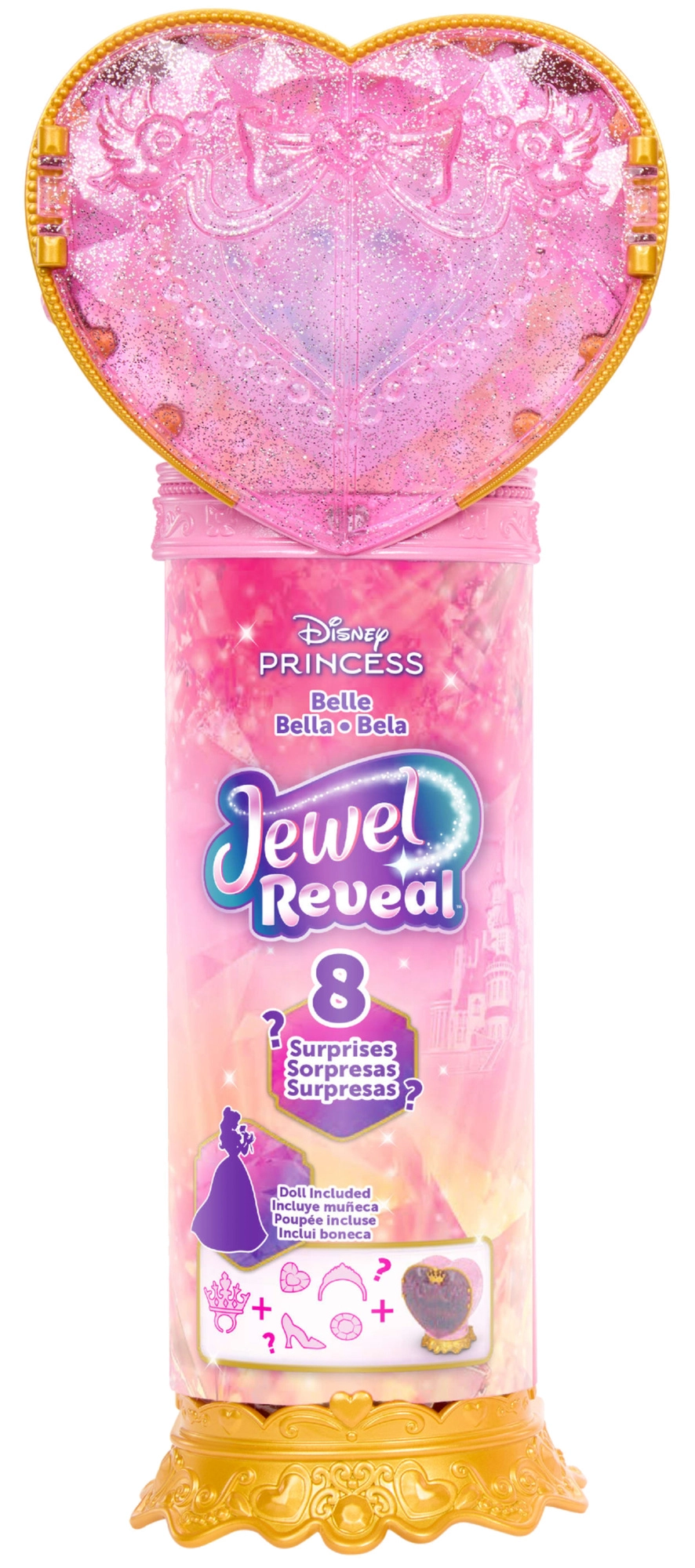 Descoperă distracția magică cu păpușa Prințesa Disney Belle din seria Jewel Reveal. Te așteaptă 8 surprize, un ambalaj sclipitor în formă de inimă care servește drept cutie de bijuterii, accesorii stilate (tiară, pantofiori, „bijuterii”) și un inel pentru copil. Ideală pentru îmbrăcări creative și povești de basm.