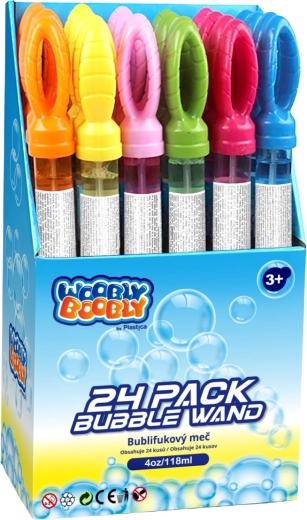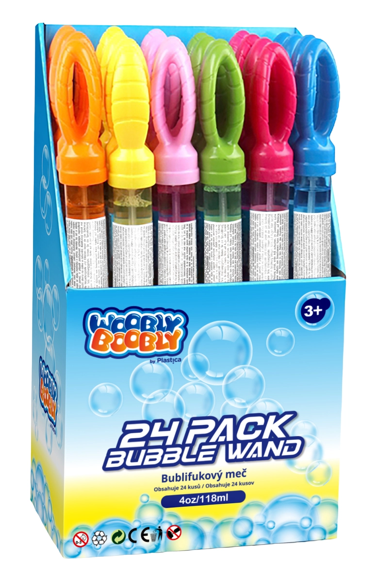 Bucură-te de multă distracție în aer liber cu sabia de baloane WOOBLY BOOBLY. Datorită bețișorului lung și ochiului mare creează baloane mari și rezistente, care îi încântă atât pe copii, cât și pe adulți. Fiecare sabie conține 118 ml de soluție, are mâner ergonomic și este ideală pentru grădină, locul de joacă și excursii. Sortiment de culori – alegerea variantei concrete nu poate fi influențată.
