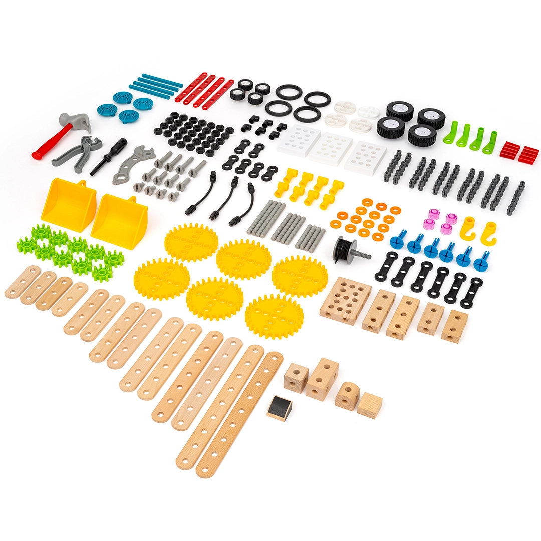 Angrenajele, axele și transmisiile le permit copiilor să asambleze mecanisme funcționale – de la roți care se rotesc până la sisteme de angrenaje simple care pun creațiile lor în mișcare.