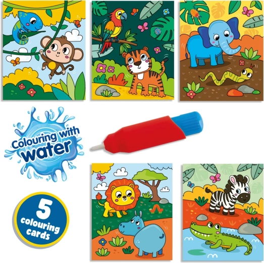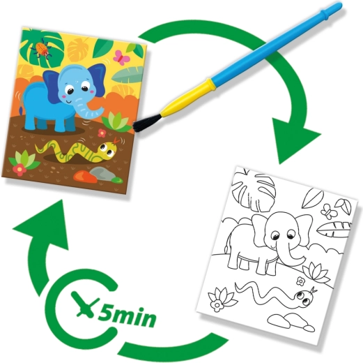 Pictură cu apă – Safari oferă copiilor o activitate distractivă și curată, fără nicio picătură de vopsea în plus. Pur și simplu umpleți pensula inclusă cu apă și, printr-o mișcare pe pagină, dezvăluiți culorile ascunse și detaliile animalelor din safari. După uscare, paginile revin la starea inițială, astfel încât copiii se pot bucura din nou și din nou de activitatea lor preferată.