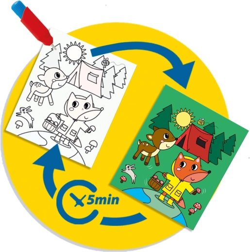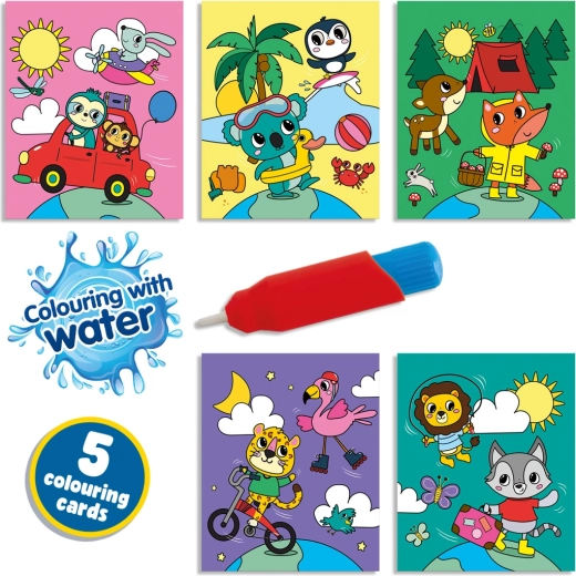 Descoperă distracția fără murdărie cu cărțile de colorat cu apă – pentru călătorii. Doar umple stiloul reîncărcabil cu apă și privește cum scenelor colorate prind viață. Pagini reutilizabile care, după uscare, dispar și sunt gata pentru o nouă sesiune de colorat. Susține motricitatea fină, creativitatea și imaginația – distracția ideală pentru drum, pentru copii de la 3 ani.