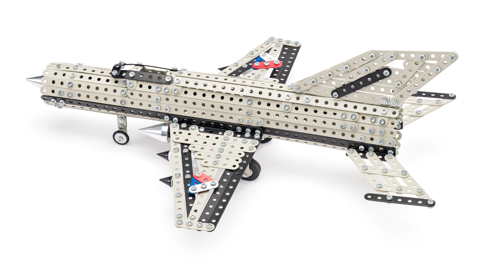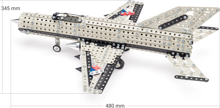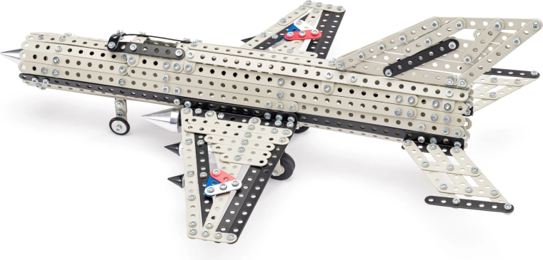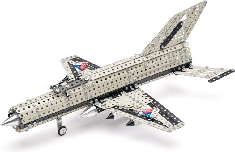 Setul de construcție Merkur MIG-21 este alegerea ideală pentru copii și adulți care iubesc tehnica și construcțiile creative. Piesele metalice solide și îmbinările cu șuruburi asigură durabilitate și un aspect realist al modelului. Rezultatul este un avion de vânătoare impresionant, cu detalii fine, care va deveni piesa de rezistență a oricărei colecții.