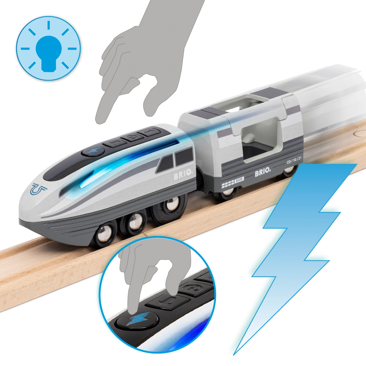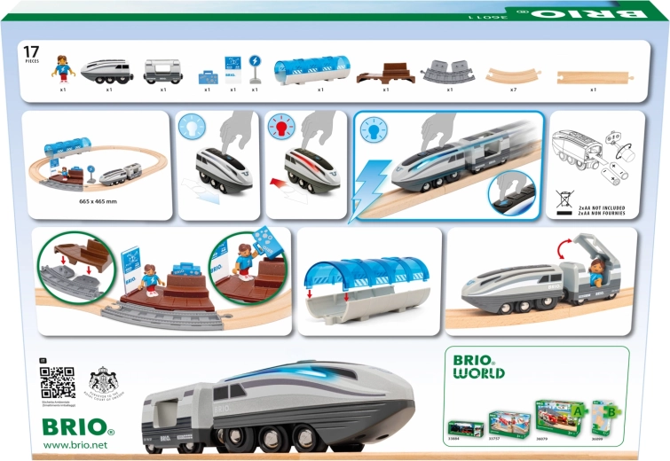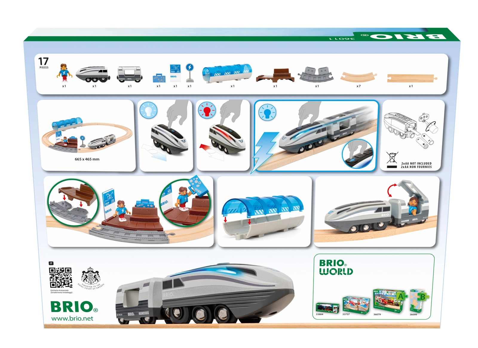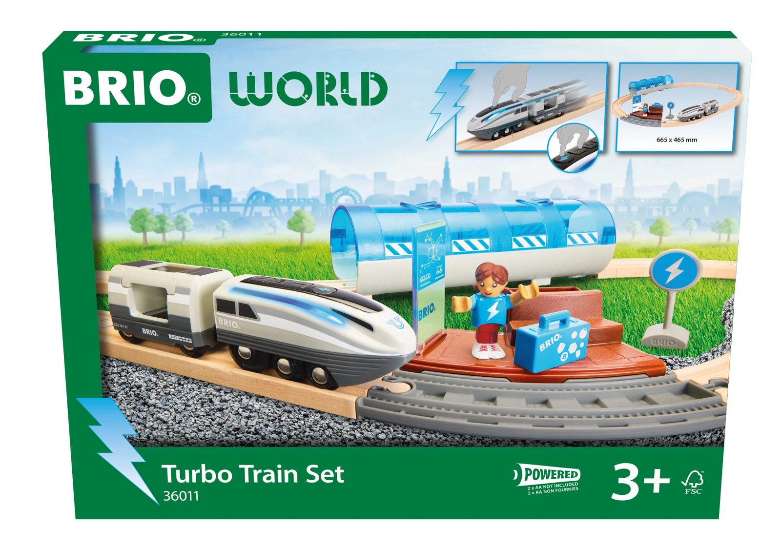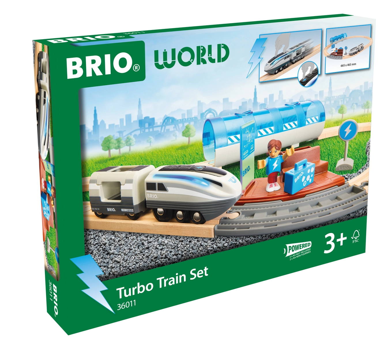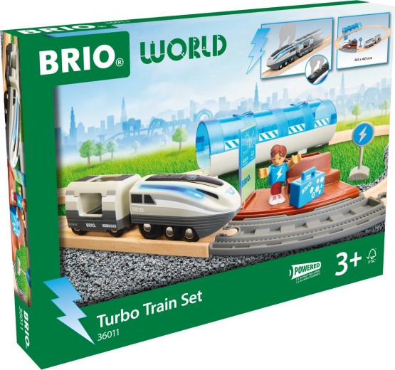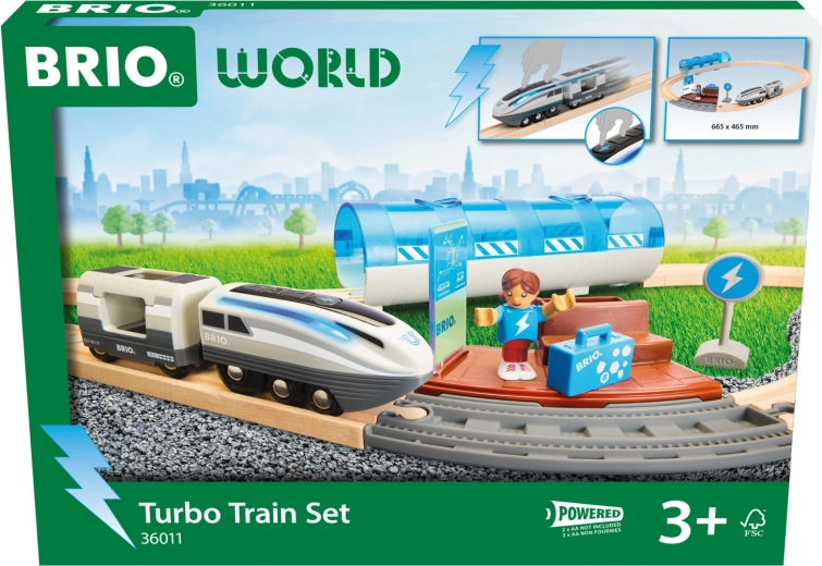 Acest set de tren creativ aduce copiilor distracție dinamică: prin apăsarea butonului Turbo, locomotiva cu baterii devine timp de 5 secunde cel mai rapid tren din lumea BRIO, iar luminile laterale trec din alb la albastru rece. Asamblează traseul, traversează tunelul, oprește la peron și spune-ți propriile povești cu pasageri și accesorii.