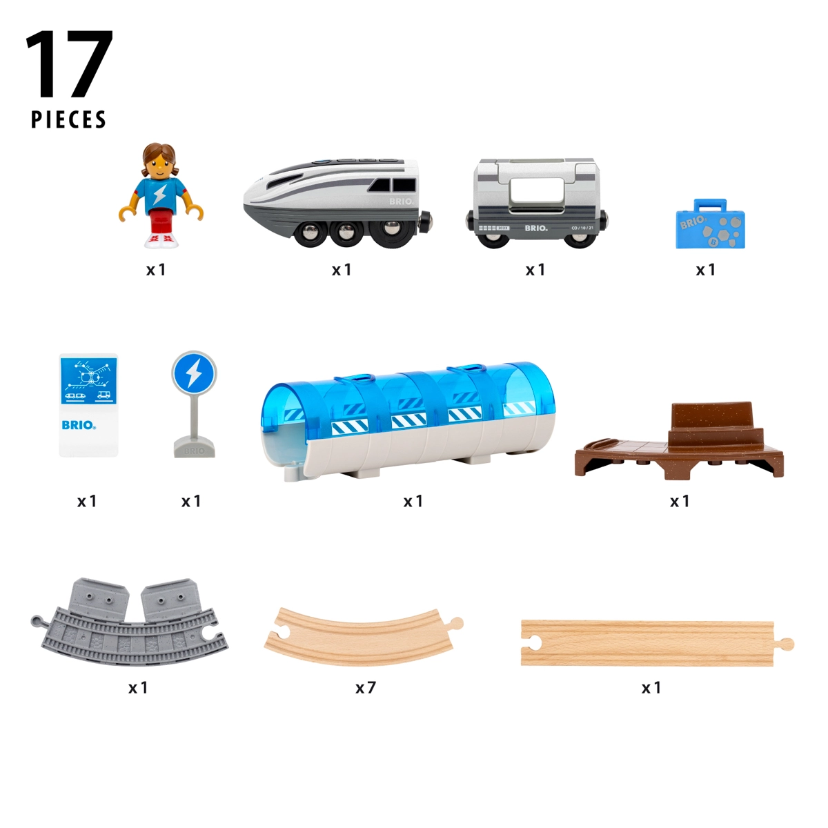 - Set complet cu 17 piese, inclusiv tunel și peron