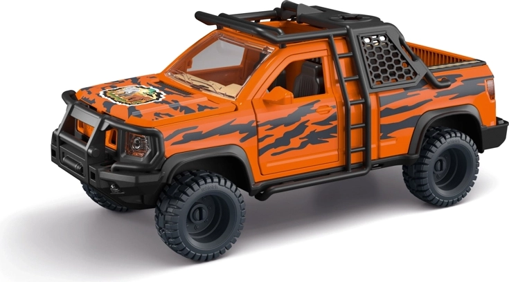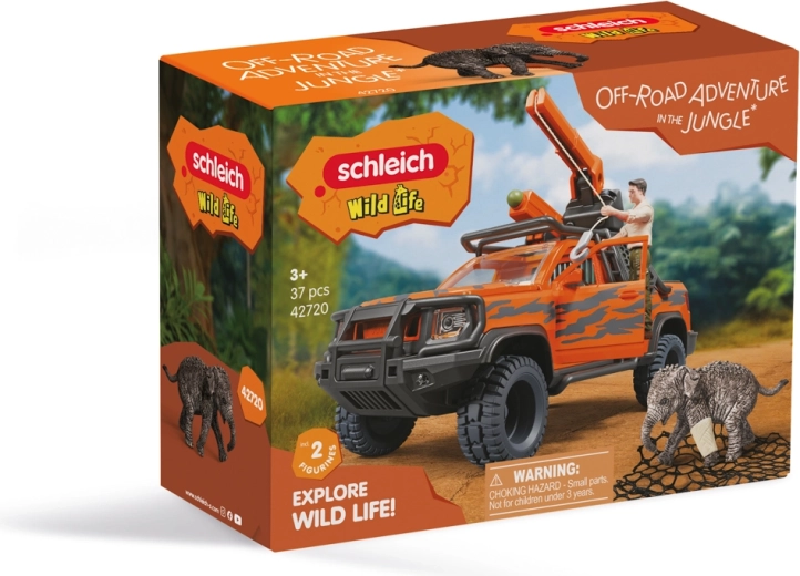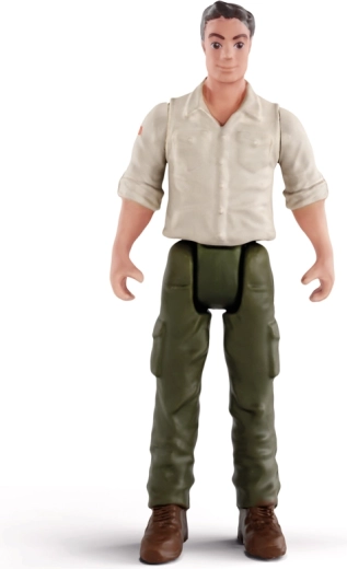 Acest vehicul de salvare aventuros face față terenului dificil – parchează lângă animal, lansează plasa din tunul de pe acoperiș și, cu ajutorul troliului funcțional, mută în siguranță micul elefant pe platforma de încărcare. Ușile, capota și hayonul care se deschid adaugă autenticitate jocului, în timp ce rangerul Tom, cu brațe și picioare mobile, oferă îngrijiri folosind bandajul inclus.