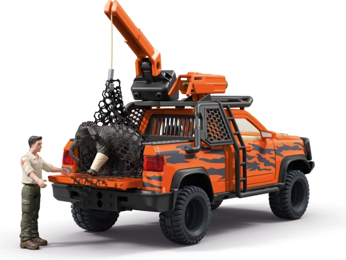 Lansatorul de pe acoperiș trage plasa și permite capturarea și îngrijirea în siguranță a animalului, fără stres. Ideal pentru povești pline de suspans din junglă.