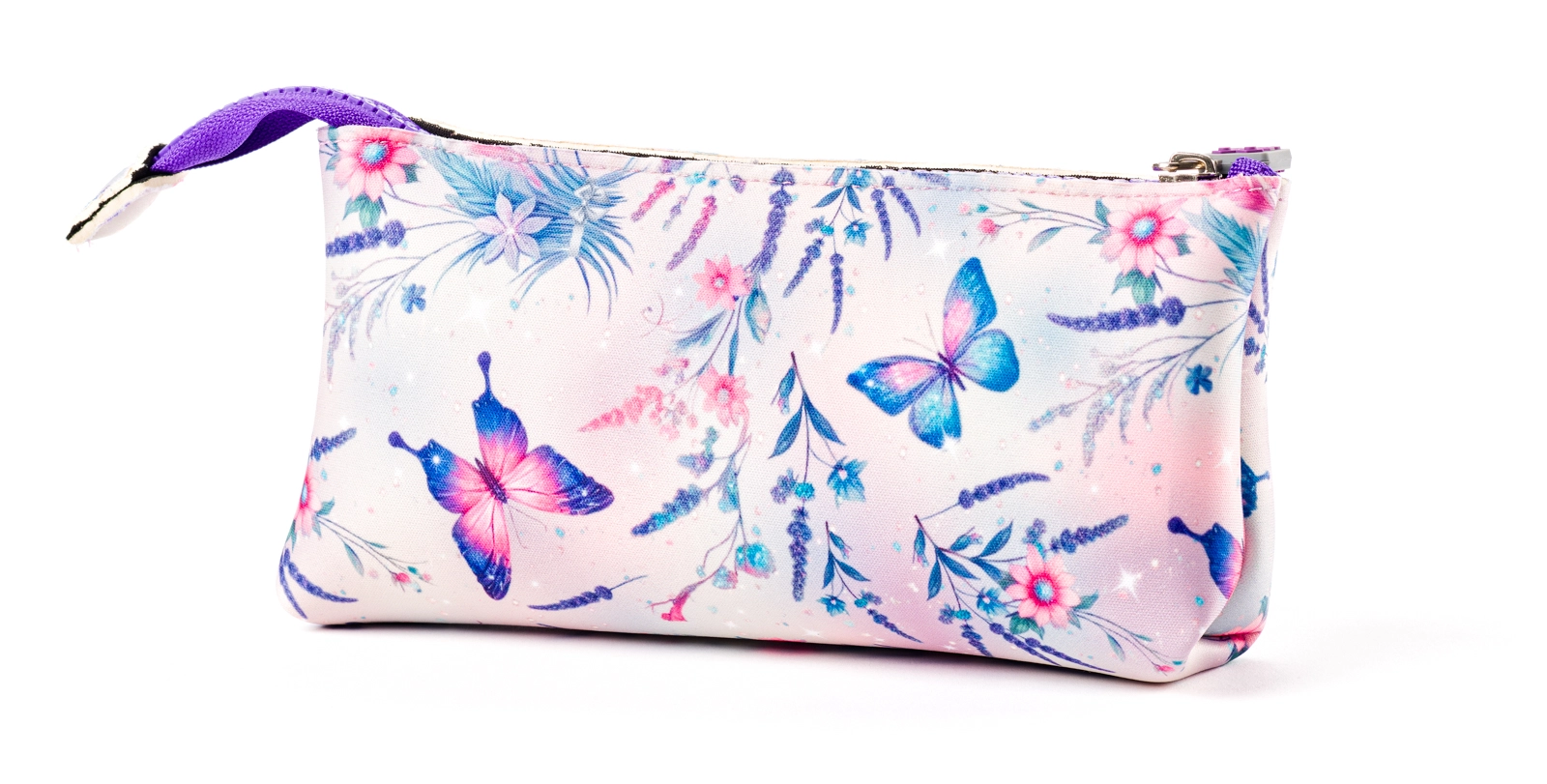 Husa stilată cu flori și fluturi îi va încânta atât pe copii, cât și pe adulți. Datorită neoprenului moale și flexibil, protejează în siguranță instrumentele de scris, cosmeticele și electronicele mici. Fermoarul mare facilitează utilizarea zilnică și oferă o bună vizibilitate a conținutului.