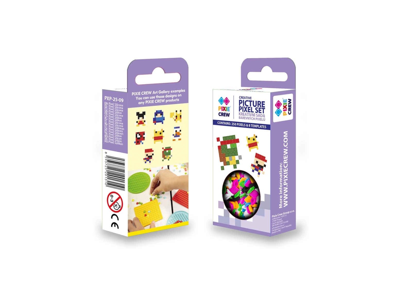 Setul creativ PIXIE CREW este ideal pentru micii creatori care iubesc pixel art-ul. În pachet găsești 250 de pixeli din silicon de calitate și 8 motive cu care poți crea ușor imagini amuzante. Datorită formei patentate, pixelii se fixează ferm pe panourile din silicon, astfel încât creația nu se destramă ușor.