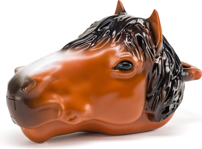 Acest cap de cal original ascunde tot ce au nevoie micii iubitori de cai pentru ore întregi de joacă creativă. Cutia de depozitare în formă de cap de cal găzduiește toate figurinele, se deschide ușor prin apasarea butonului de sub bot, iar datorită sistemului cu click poți seta diferite unghiuri de deschidere a gurii pentru depozitare și expunere comode. Construcția ușoară, cu mâner practic, îți permite să iei ferma oriunde.