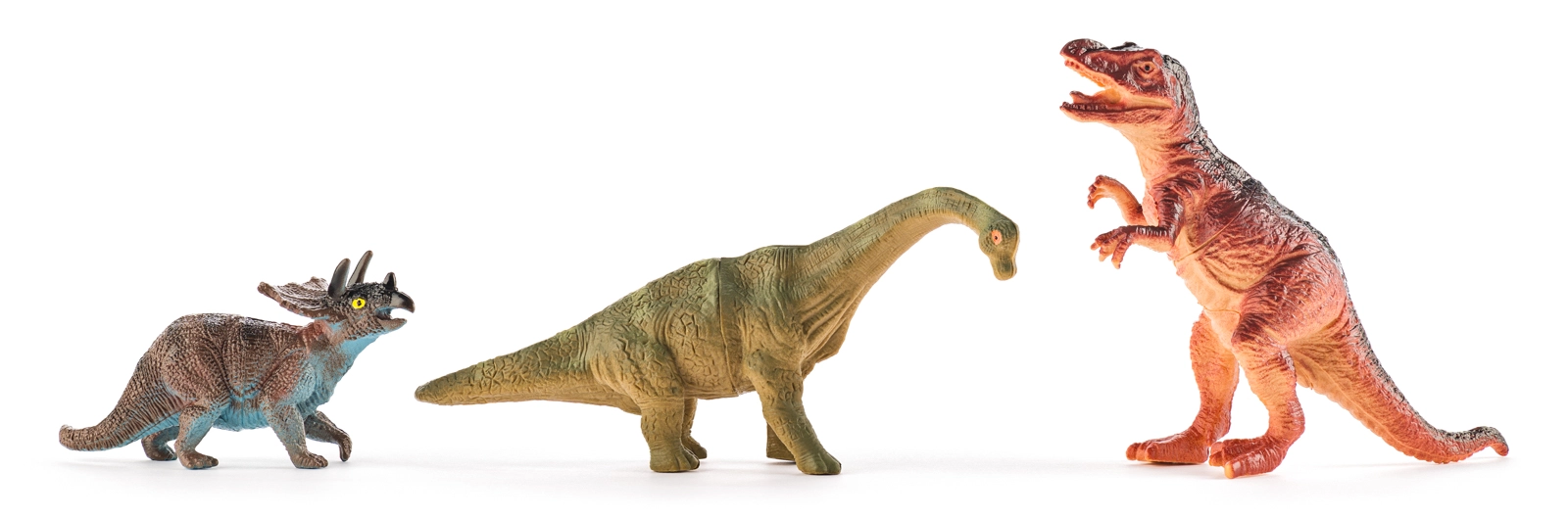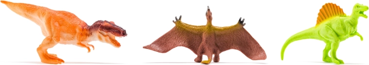 Diverse specii și mărimi de dinozauri stimulează imaginația, povestirea și primele cunoștințe despre creaturile preistorice.
