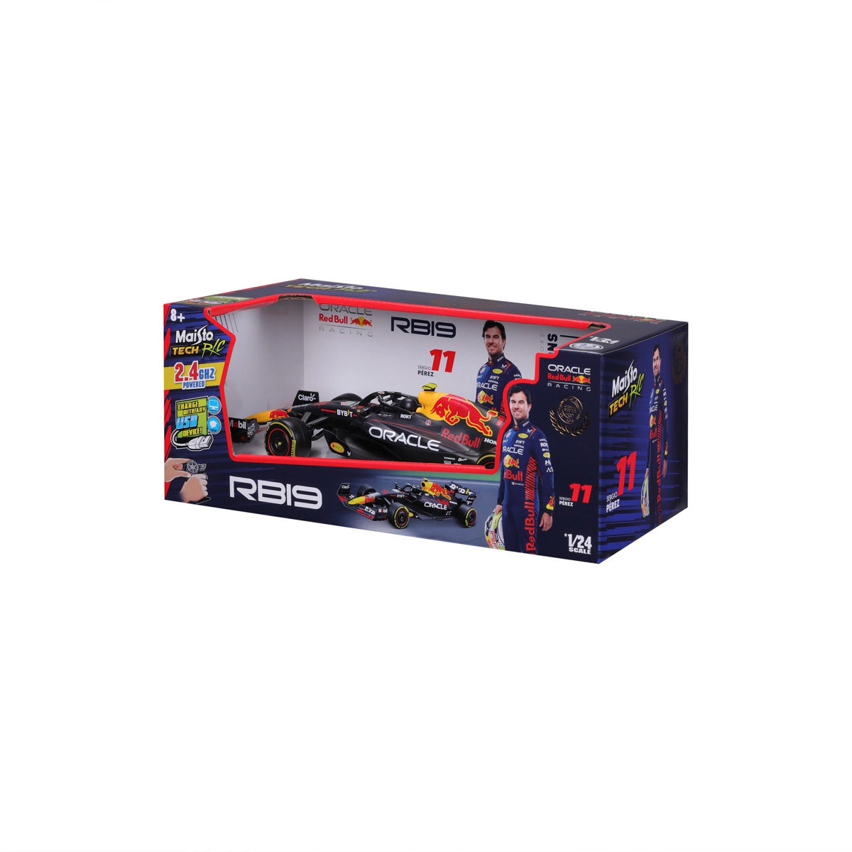 Trăiește viteza și precizia cu mașinuța RC ORACLE RED BULL RACING RB19 la scara 1:24. Modelul pilotului Sergio Pérez oferă control 2,4 GHz pentru până la 4 jucători, baterie Li‑ion reîncărcabilă prin USB, telecomandă tip pistol și raza de până la 35 m – ideală pentru distracție atât în interior, cât și în aer liber.