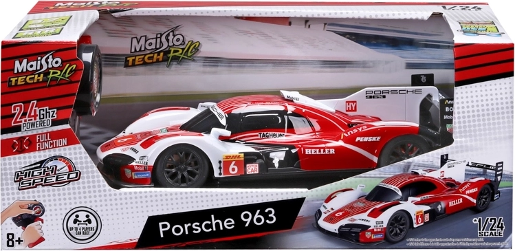 Trăiește cursele de anduranță cu modelul RC Maisto Endurance Racer – PORSCHE 963. Formele autentice ale caroseriei, stickerele de competiție și aripa mare asigură un aspect impresionant și stabilitate la viteze mai mari. Controlerul Mini‑Pro inclus oferă direcție precisă și dozare fină a accelerației.