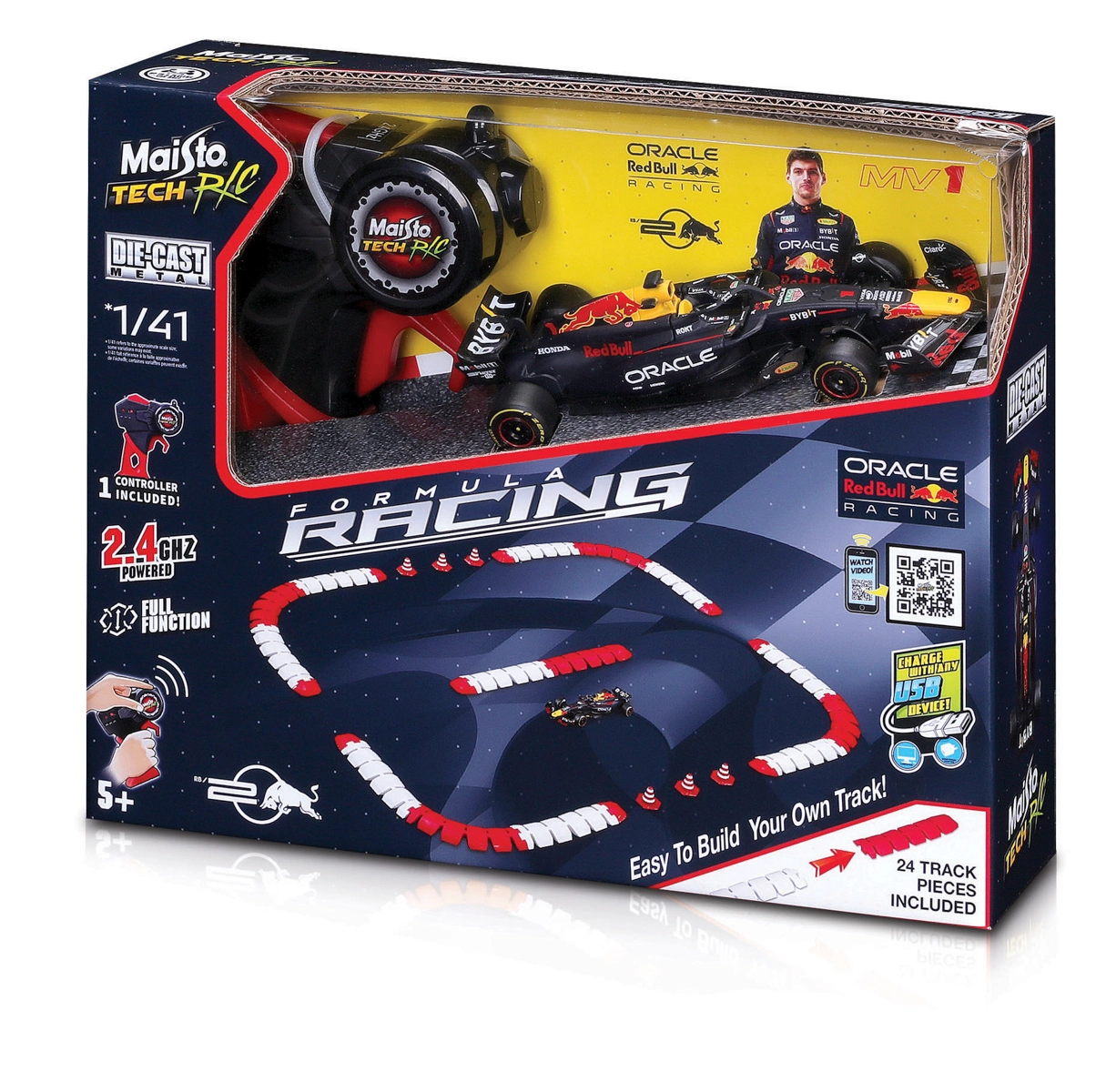 Trăiți emoția curselor cu monopostul RC Red Bull Racing RB20 (2024) la scară 1:41, o replică licențiată a mașinii #1 Max Verstappen. Setul include pistă de curse flexibilă cu obstacole, tehnologie 2,4 GHz pentru rulaj simultan de până la 4 jucători, rază de acțiune 20 m și încărcare USB practică. Cadoul ideal pentru fanii F1 mici și mari, de la 6 ani.
