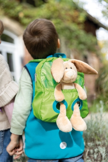 În căutarea unui rucsac drăguț și funcțional pentru micii aventurieri? Rucsacul verde pentru copii NICI cu motiv de frunzulițe oferă o combinație excelentă de confort, siguranță și distracție. Pe partea din față este fixat un iepuraș de pluș (25 cm) catifelat, pe care copilul îl poate purta cu el sau îl poate scoate ușor pentru a se alinta.