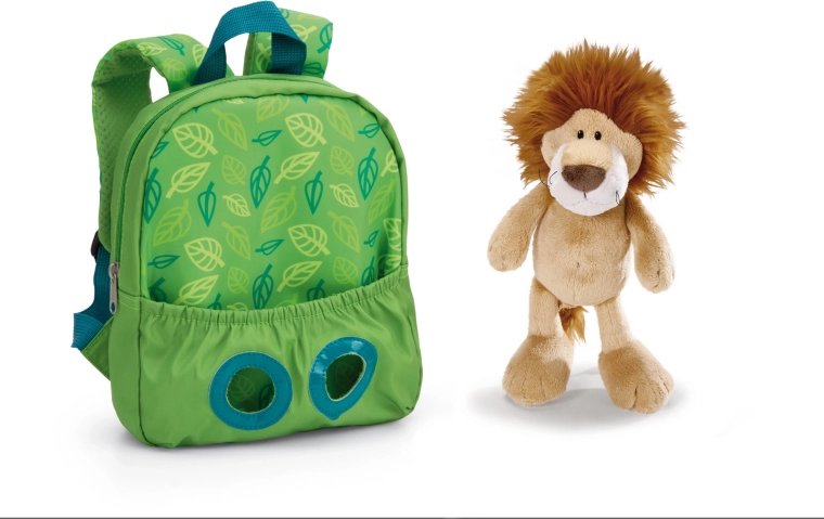 Căutați un rucsăcel practic și jucăuș pentru micii aventurieri? Rucsacul verde NICI cu model de frunze îmbină funcționalitatea și distracția – copiii își pot lua micile lor lucruri și, în același timp, îndrăgitul leu de pluș (25 cm), fixat în buzunarul frontal elastic, care îi poate „însoți” la fiecare pas.