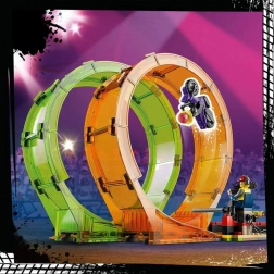 Setul LEGO City Stuntz Dublă buclă pentru cascadorii oferă copiilor de la 7 ani posibilități nesfârșite de joacă. Configurația arenei cu buclă în flăcări, buclă cu gura de șarpe și spectaculosul perete de foc ridică trucurile de cascadorie la un nou nivel. Motocicletele cu volant prind ușor viteză și intră în acțiune, în timp ce monster truck-ul cu rampă încheie show-ul cu un salt grandios.