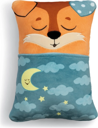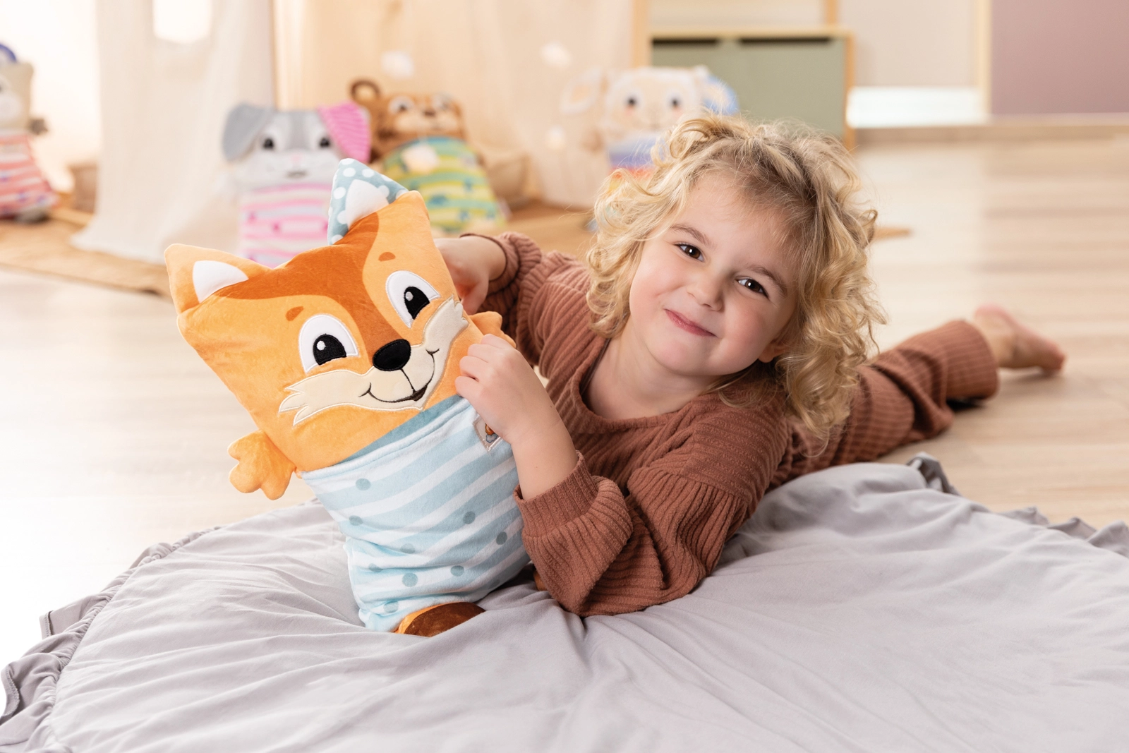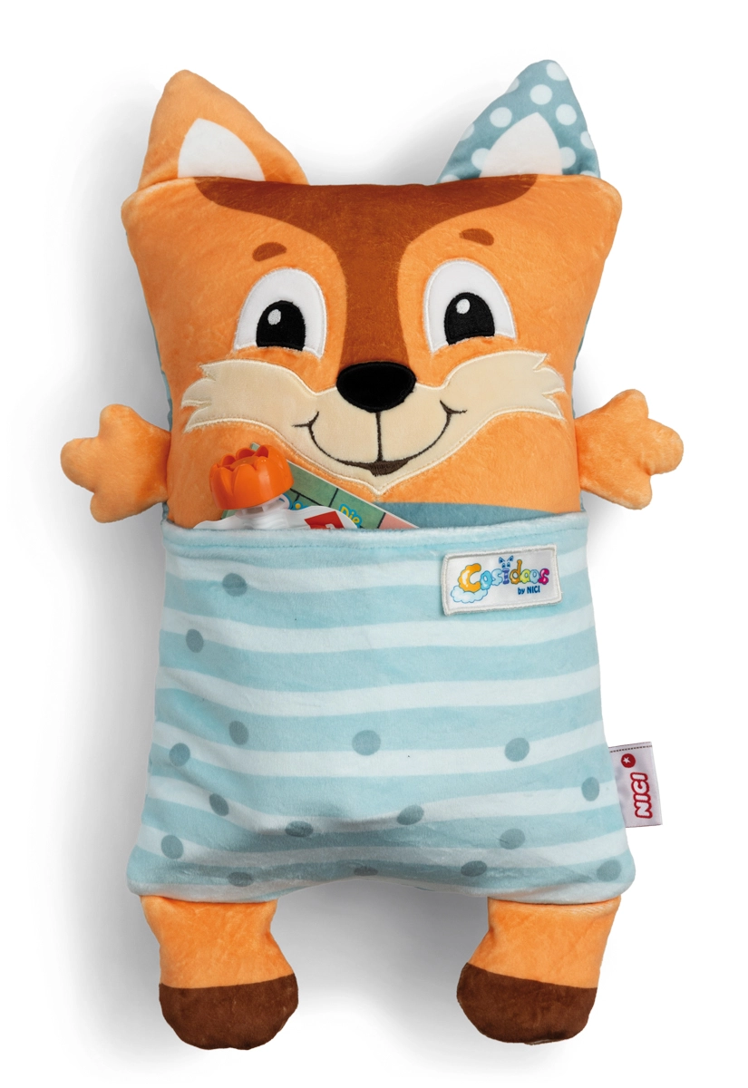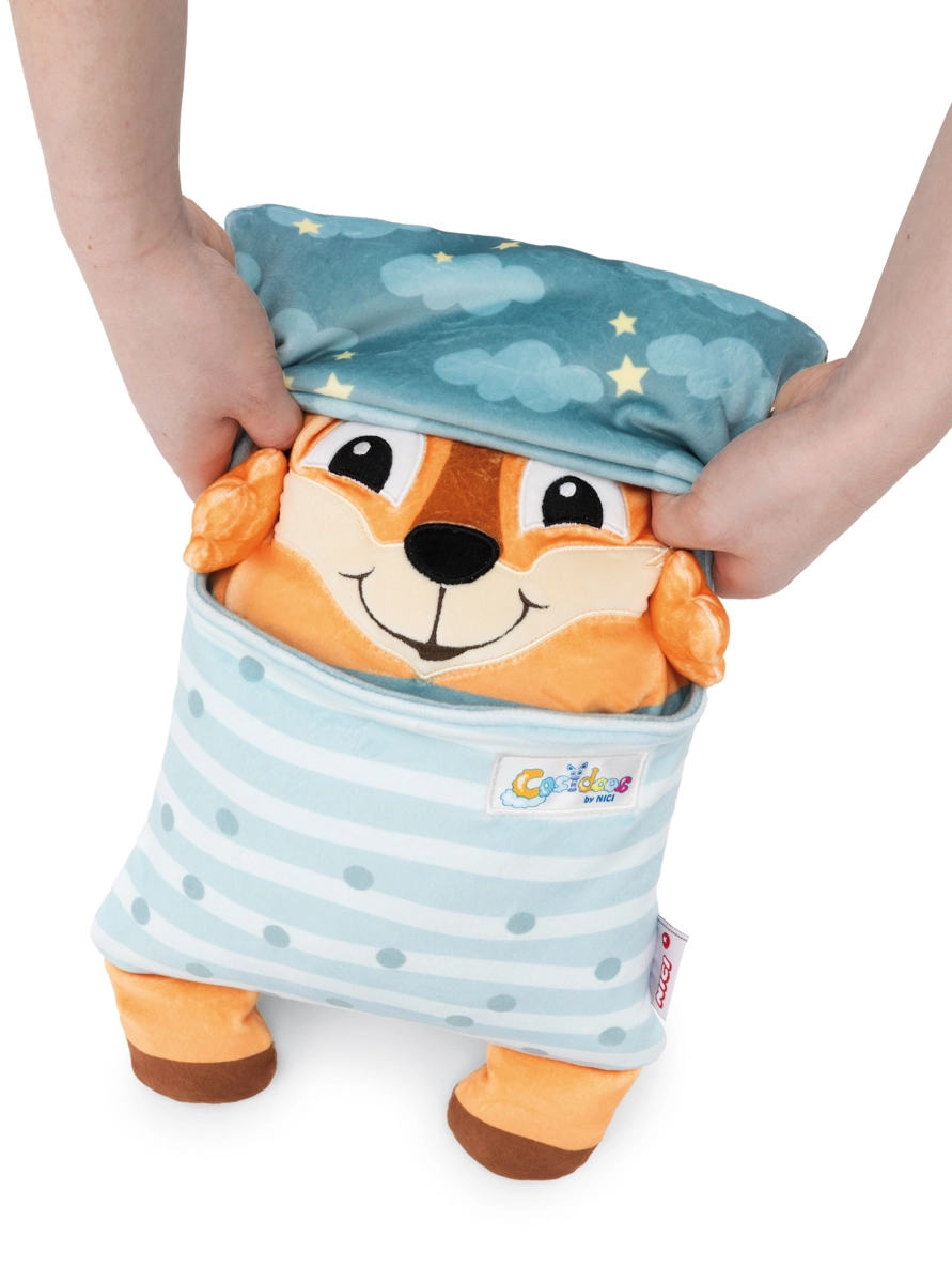 Descoperă farmecul vulpii NICI Cosidoos – un prieten pufos care se schimbă dintr-o singură răsturnare în funcție de momentul zilei. Ziua încurajează joaca creativă și imaginația, iar seara devine un companion blând pentru un somn liniștit. Datorită plușului de calitate, super moale, este o bucurie de mângâiat, îmbrățișat și folosit ca perniță.