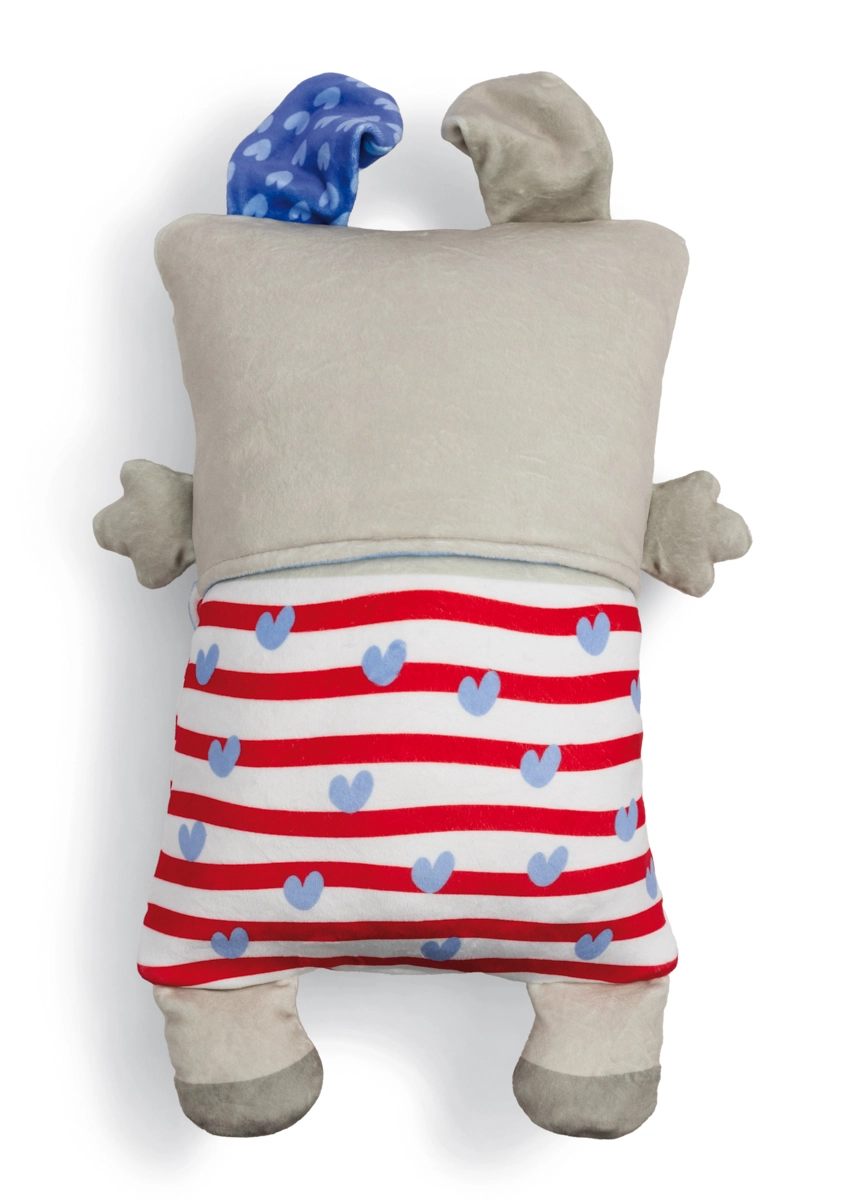 Buzunarele moi, practice, sunt ideale pentru mici comori, suzetă sau periuță – totul la îndemână acasă și în călătorii. Plușul NICI de înaltă calitate este blând cu pielea copiilor și îmbie la alint, în timp ce execuția reversibilă îi ajută pe cei mici să înțeleagă ritualul zilei și al nopții și ușurează rutina de seară pentru somn.