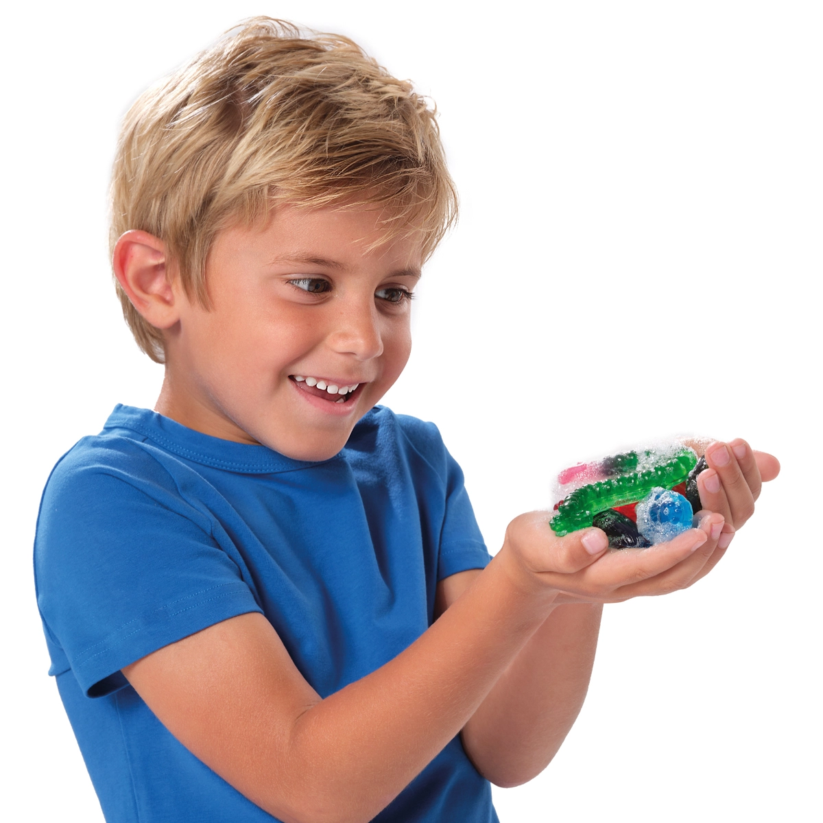 - Bază de săpun pentru topire, colorant roșu 5 ml, colorant albastru 5 ml, colorant galben 5 ml, formă cu siluete de insecte, pipetă, instrucțiuni de utilizare