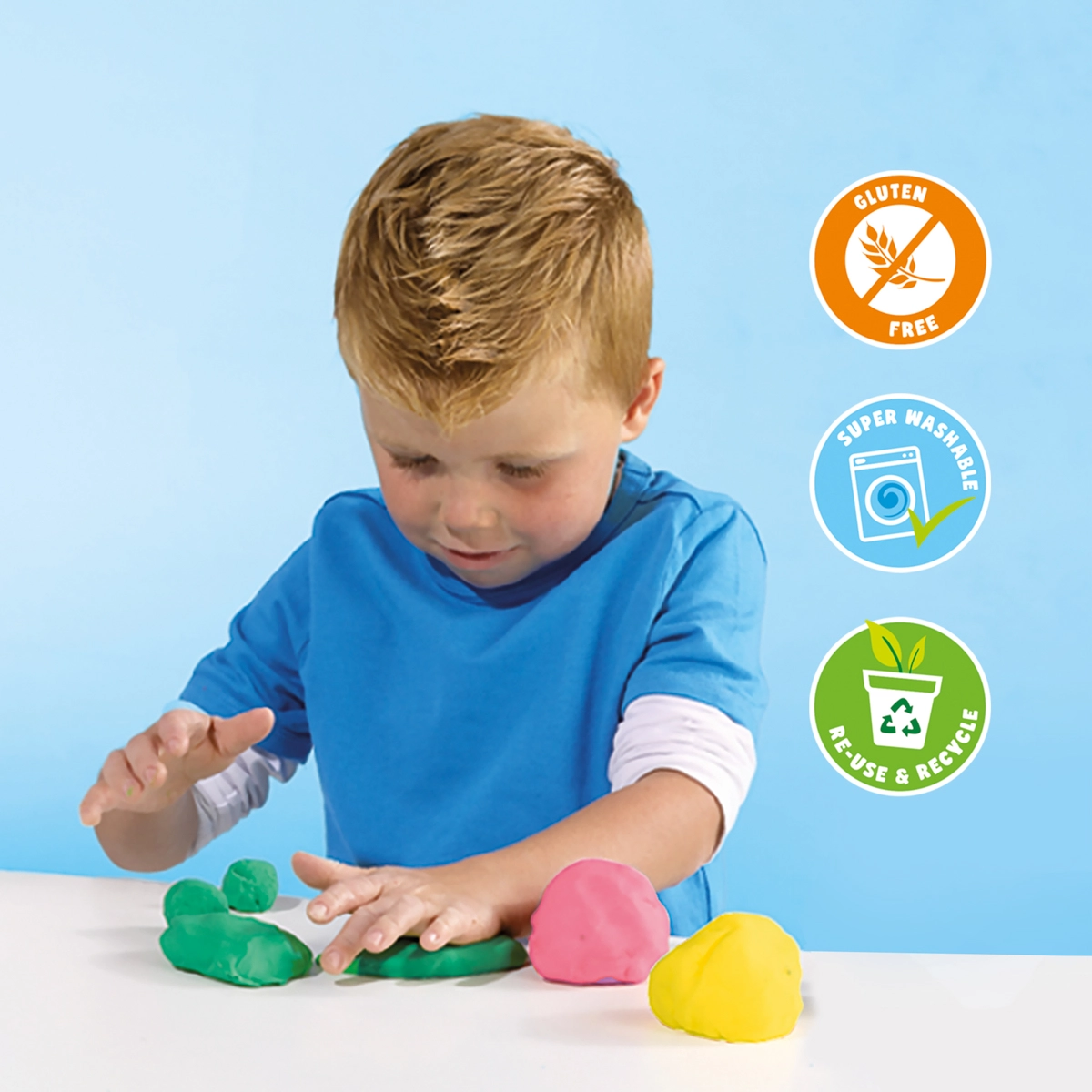 Copiii pot, cu ajutorul a două role, două cuțite de modelaj și opt forme, să creeze animăluțe, modele și figurine drăguțe. Gama ECO, cu un conținut mai ridicat de materii prime naturale și utilizarea plasticului reciclat pentru ambalaje, este alegerea ideală pentru un joc responsabil. Plastilina este fără gluten, potrivită pentru copii de la 3 ani.