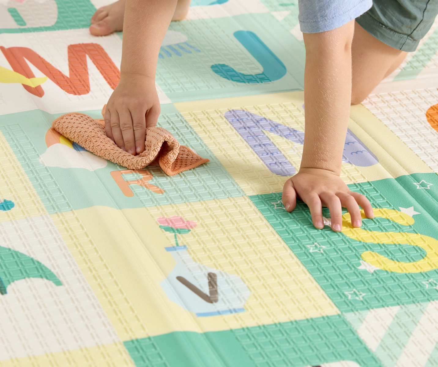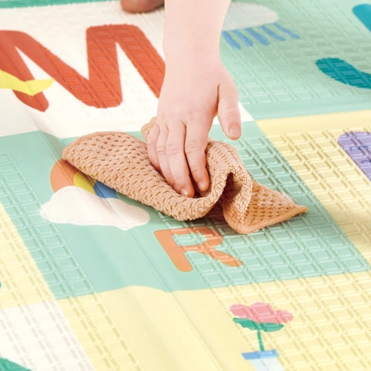 Descoperă un covoraș spațios, moale și ușor de întreținut pentru bebeluși și copii mici. Oferă o suprafață mare de joacă, un alfabet colorat pentru învățare și pe verso o scară de măsurare. Este rezistent la apă, antiderapant și se pliază rapid pentru depozitare economică – ideal pentru joacă zilnică, târâre și relaxare.