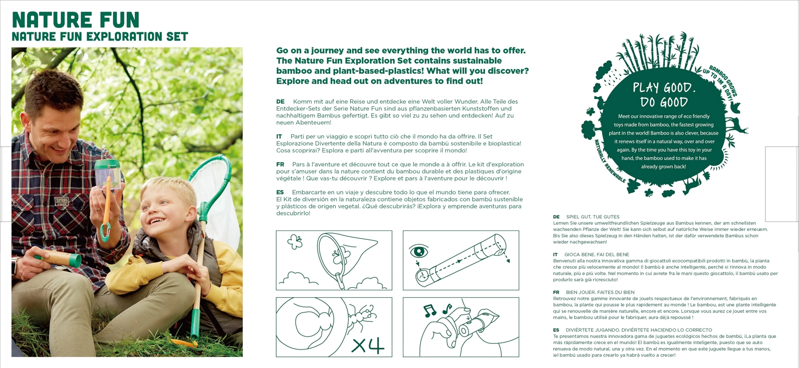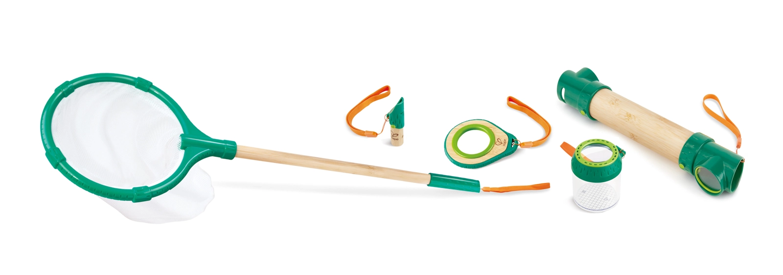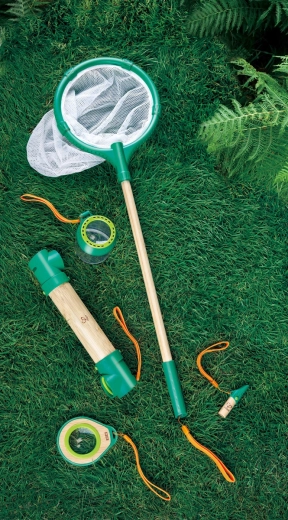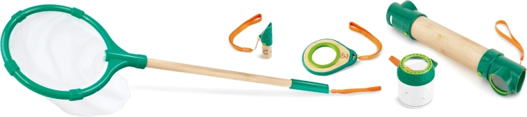 Acest set de explorare pentru copii este un companion excelent pentru excursii în pădure, grădină sau parc. Datorită dotărilor bogate, copiii pot exersa în siguranță prinderea și observarea insectelor, explorarea detaliilor cu lupa și orientarea în teren. Construcția durabilă cu piese din lemn și plastic, prinderea ușoară și buclele practice pentru încheietură asigură utilizare comodă și sigură.