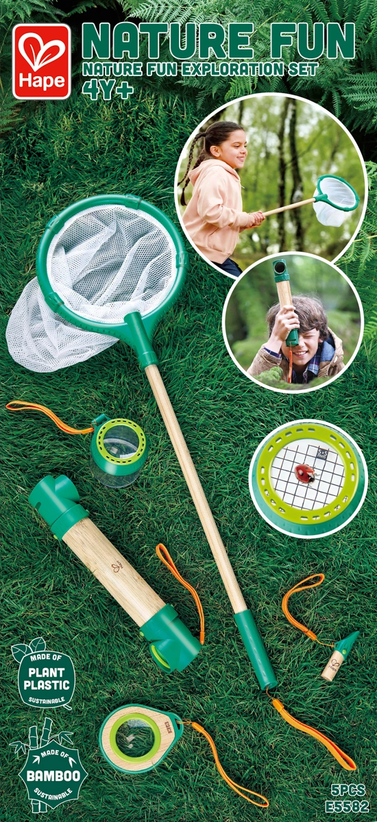 Designul sustenabil îmbină lemnul de bambus și plasticul PE pe bază de plante pentru durată lungă de viață și o amprentă ecologică redusă. Datorită recipientului transparent de observare cu lupă integrată și scală de 5×5 mm, copiii văd totul de aproape, iar plasa cu margine lată facilitează colectarea delicată a micilor viețuitoare.