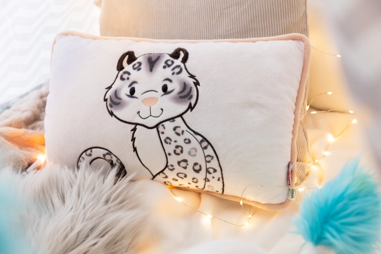 O pernă stilată și foarte pufoasă din colecția NICI GREEN, cu motivul leopardului de zăpadă Eleni Snowbellexecuție premium, pluș mătăsos și design reversibil – în față aplicație cu leopard, pe spate model leopard. Umplutura și plușul sunt realizate din materiale reciclate (RPET). Excelentă ca cadou, pentru relaxare și decor în camera copiilor sau în living. Potrivită de la 0+.