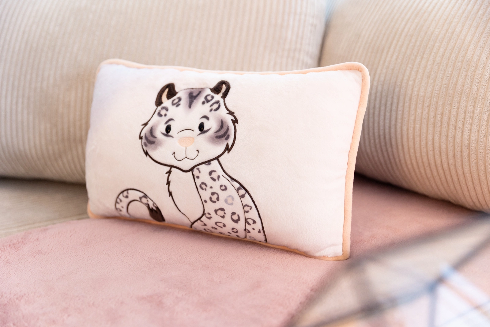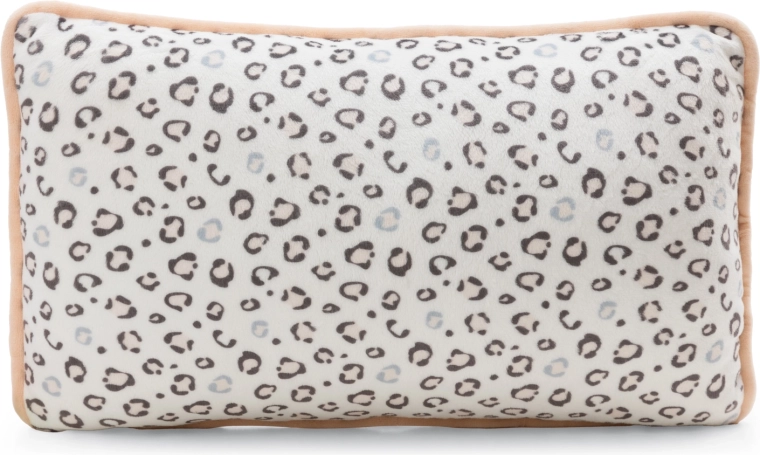 Partea din față este decorată cu o aplicație adorabilă a leopardului de zăpadă, iar spatele are un model leopard stilat – ideal atât pentru decor, cât și pentru relaxare.