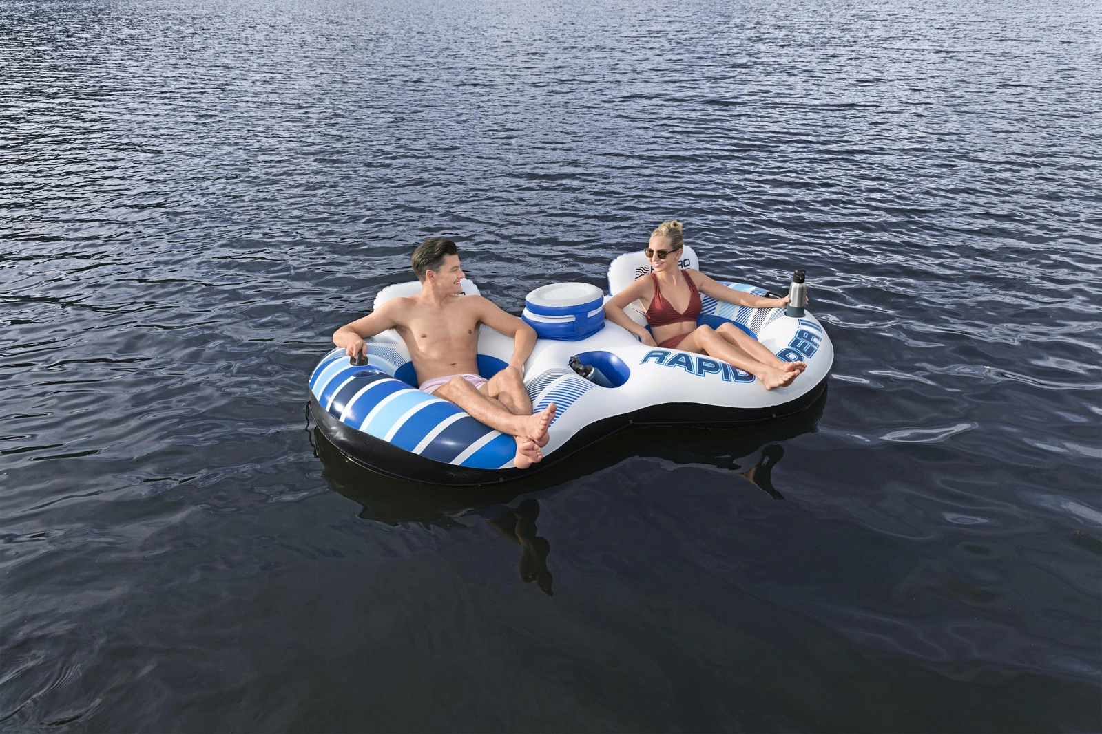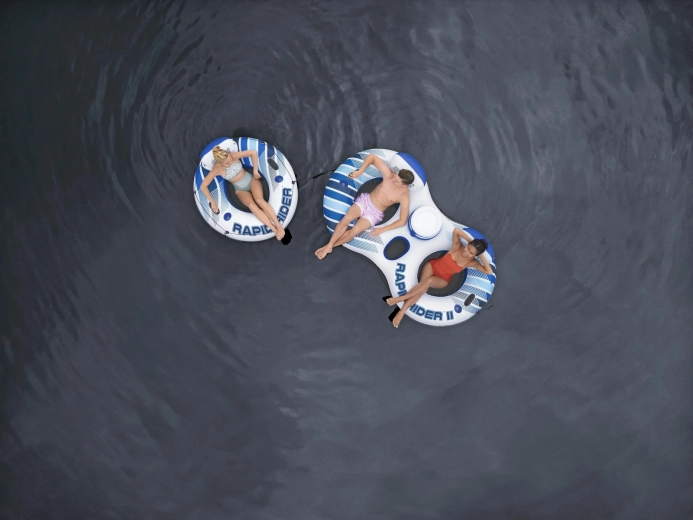 Detaliile gândite cu grijă sporesc confortul și siguranța: două suporturi pentru băuturi, răcitor central, spațiu practic de depozitare, mânere solide, cordon de siguranță perimetral și posibilitatea de conectare cu alte tuburi prin Clasp ’N Go™. Valvele cu eliberare rapidă accelerează umflarea și dezumflarea, astfel încât sunteți gata de ieșire pe apă sau de întoarcerea acasă în doar câteva clipe.
