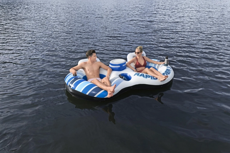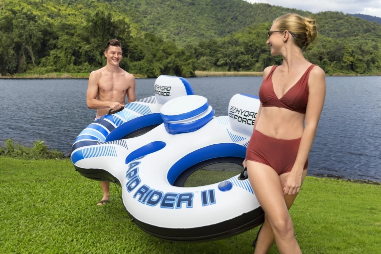 Bucurați-vă la maximum de vară. Fotoliul dublu pentru apă HYDRO-FORCE RAPID RIDER II este conceput pentru relaxare confortabilă în doi – cu spătare înalte, șezuturi din plasă și o capacitate de încărcare de până la 250 kg. Materialul rezistent cu finisaj Color Shield™ își păstrează culorile intense pe termen lung și rezistă utilizării estivale.