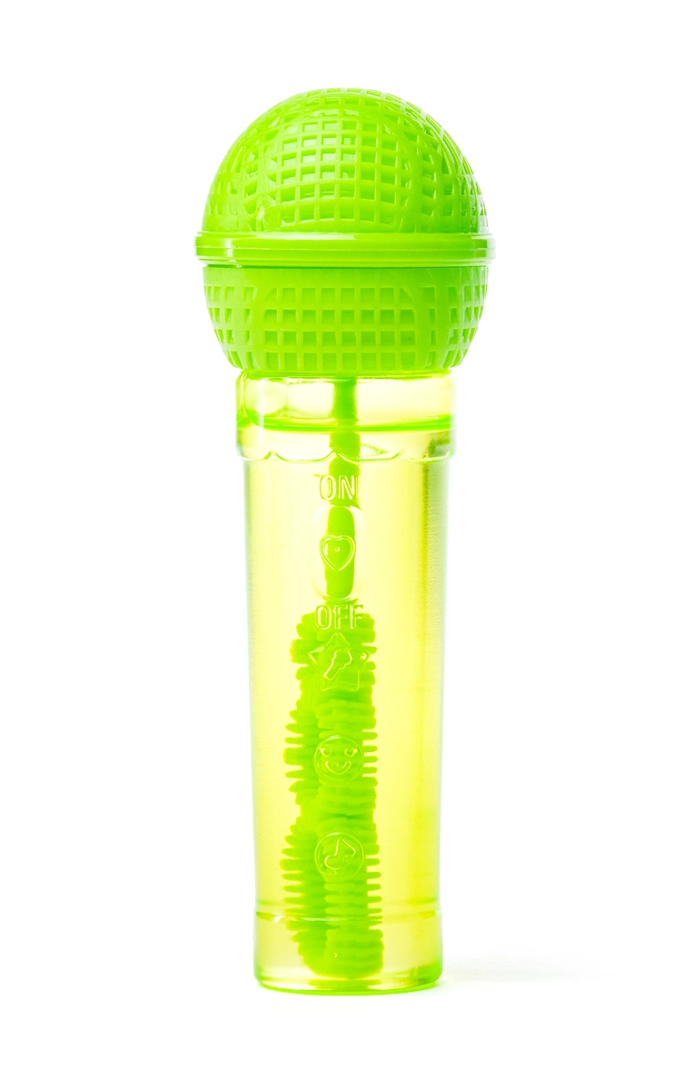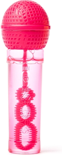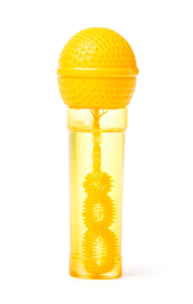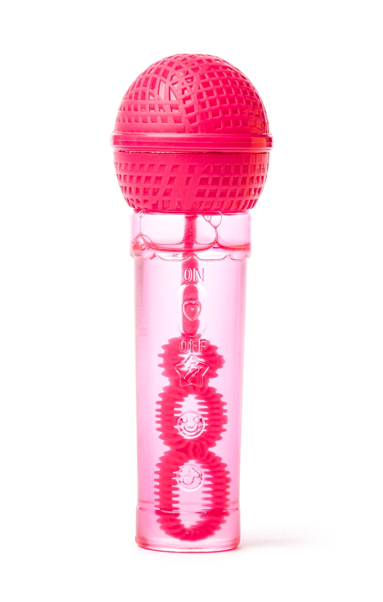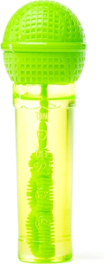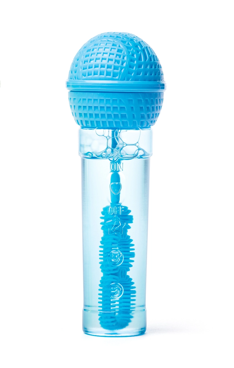 Mini aparat de făcut bule în formă de microfon, distractiv, pentru copii de la 3 ani. Datorită formei ergonomice se ține perfect în mână și le permite copiilor să „cânte” și, în același timp, să sufle o mulțime de bule colorate. Pachetul include 30 ml de soluție, un tub transparent pentru controlul nivelului și patru variante de culori vii în mix aleatoriu.