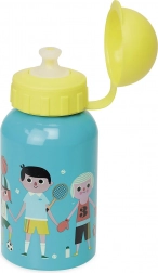 Sticlă practică și drăguță pentru copii din metal, cu volum de 300 ml, corp albastru și capac din plastic rabatabil. Ideală pentru grădiniță, școală și locul de joacă – încape în orice rucsăcel și se întreține ușor. Ilustrată de artista Ingela P. Arrhenius. Ușoară, rezistentă și compatibilă cu mașina de spălat vase.