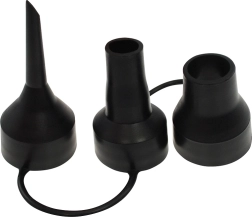 Este disponibilă și funcția de inversare, astfel că vă ajută și la golirea aerului din obiectele voluminoase. Pompa include conectori pentru priza auto. Sunt disponibile și 3 duze diferite și un debit de aer de 250 l/min.