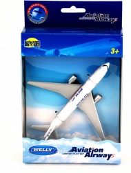 Miniatură stilată a avionului de pasageri Boeing 777 de la Welly, care îi va încânta pe micii și marii pasionați de aviație. Combinația de metal și plastic asigură durabilitate, detalii fine și o durată de viață îndelungată. Modelul este livrat într-o cutie cadou colorată cu fereastră, fiind ideal și pentru a fi oferit cadou.