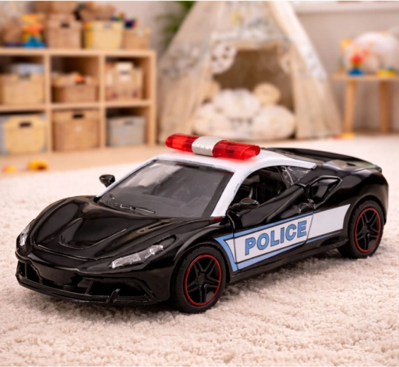 Mecanismul pull-back este intuitiv și nu necesită baterii – pur și simplu trageți mașina înapoi și urmăriți demarajul sprinten înainte. Ușile deschise intensifică realismul jocului și susțin urmăriri și scenarii creative de poliție.
