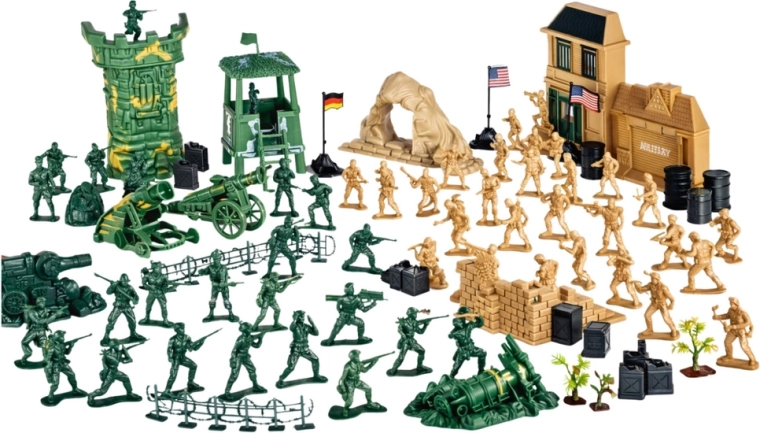 - Figurine și accesorii variate: soldați, vehicule, tunuri, arme, bariere, steaguri, garduri