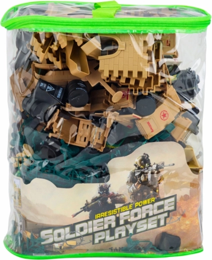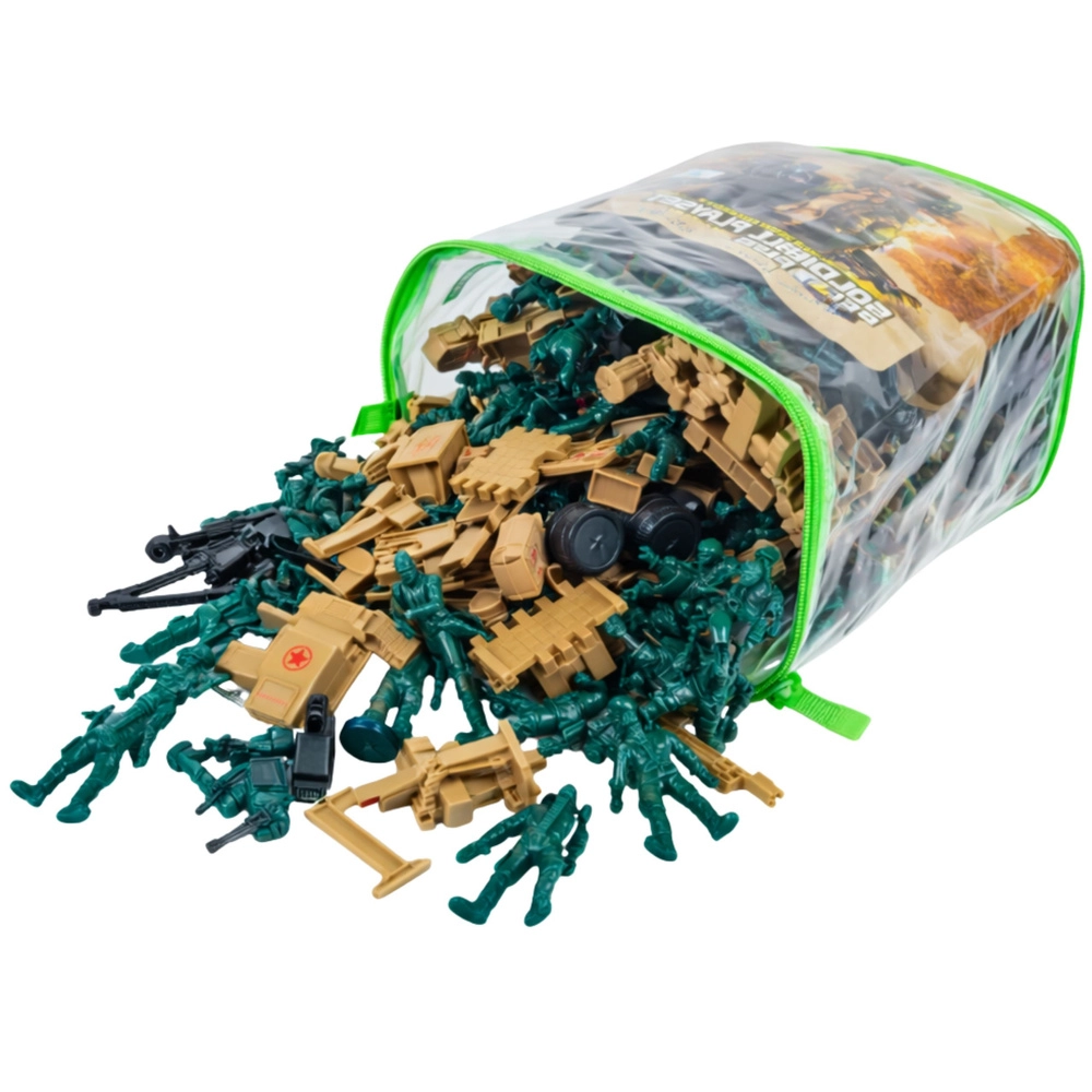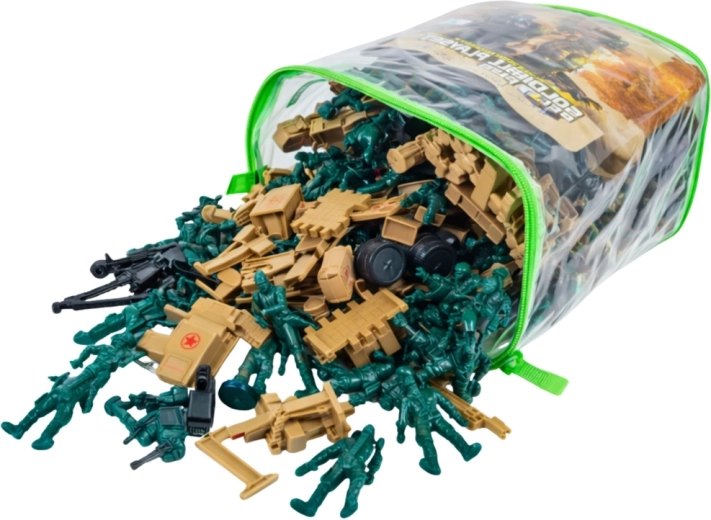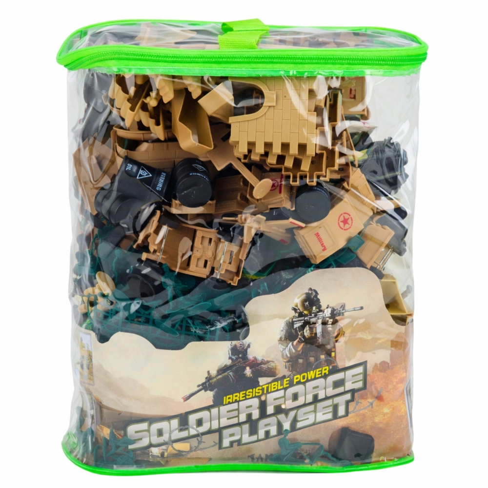 Set militar amplu pentru copii, care oferă până la 400 de piese pentru scenarii nesfârșite de bătălii, misiuni și apărarea bazelor. Găsiți în el soldăței, vehicule, tunuri, bariere și alte accesorii militare. Include o geantă transparentă cu fermoar pentru depozitare și transport ușor. Figurinele din plastic rezistent susțin jocul creativ, dezvoltă imaginația și motricitatea fină – ideal pentru distracție individuală sau de echipă, acasă și în aer liber.